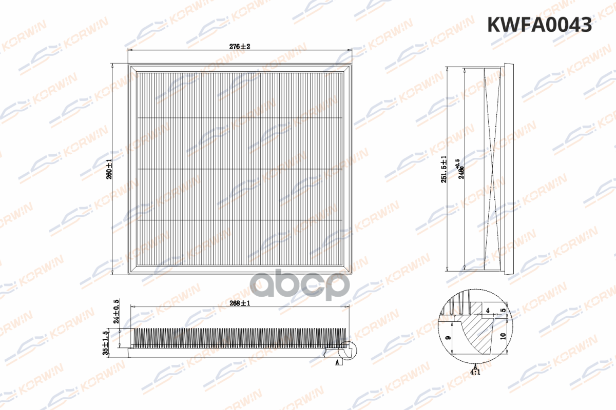 KORWIN KWFA0043 Фильтр воздушный BMW 5/5GT >09/ 7/ X6 > 08