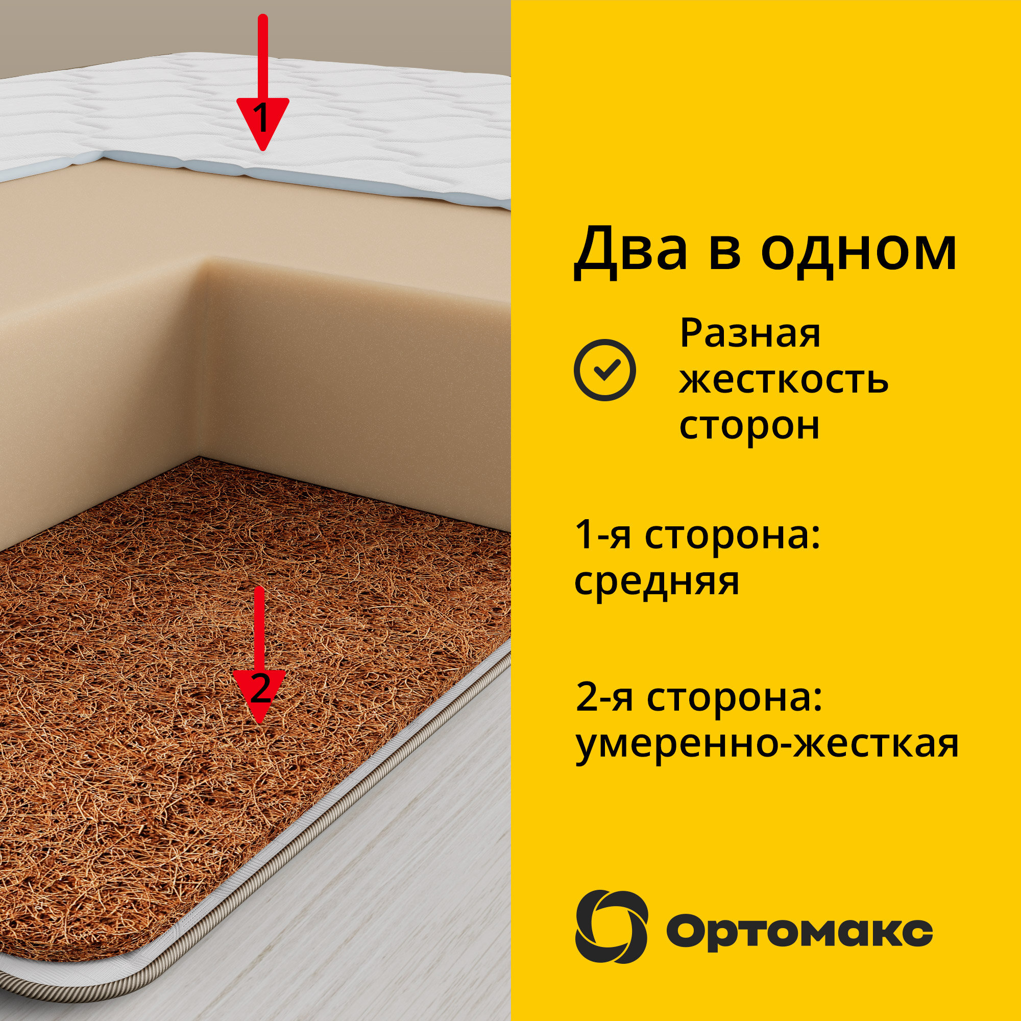 Двусторонний ортопедический матрас Ортомакс Monolit Premium Cocos 90х190 (односпальный) с кокосовой койрой