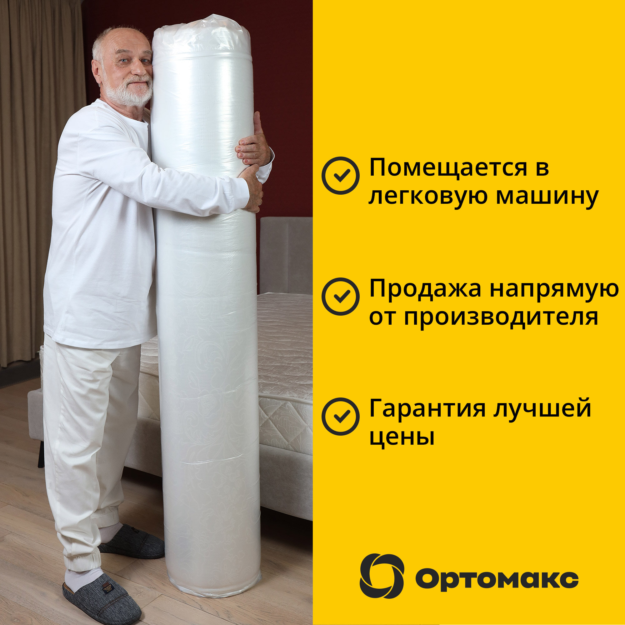 Матрас для дачи и загородного дома Ортомакс Green Dacha 90х200 (односпальный) без пружин, скручен в компактный вакуумный рулон