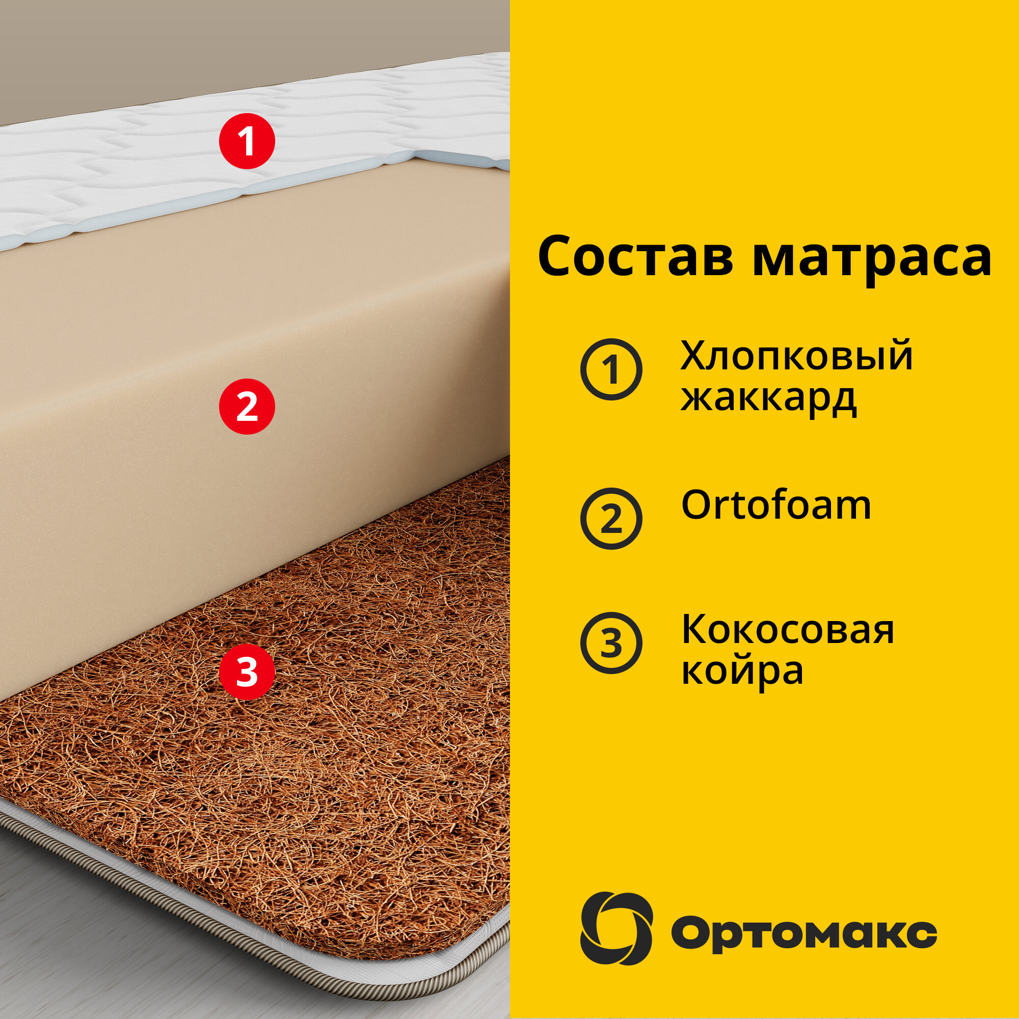 Беспружинный матрас Ортомакс Maxi Monolit Premium Cocos 90х200х32 (односпальный), с ортопедическим эффектом