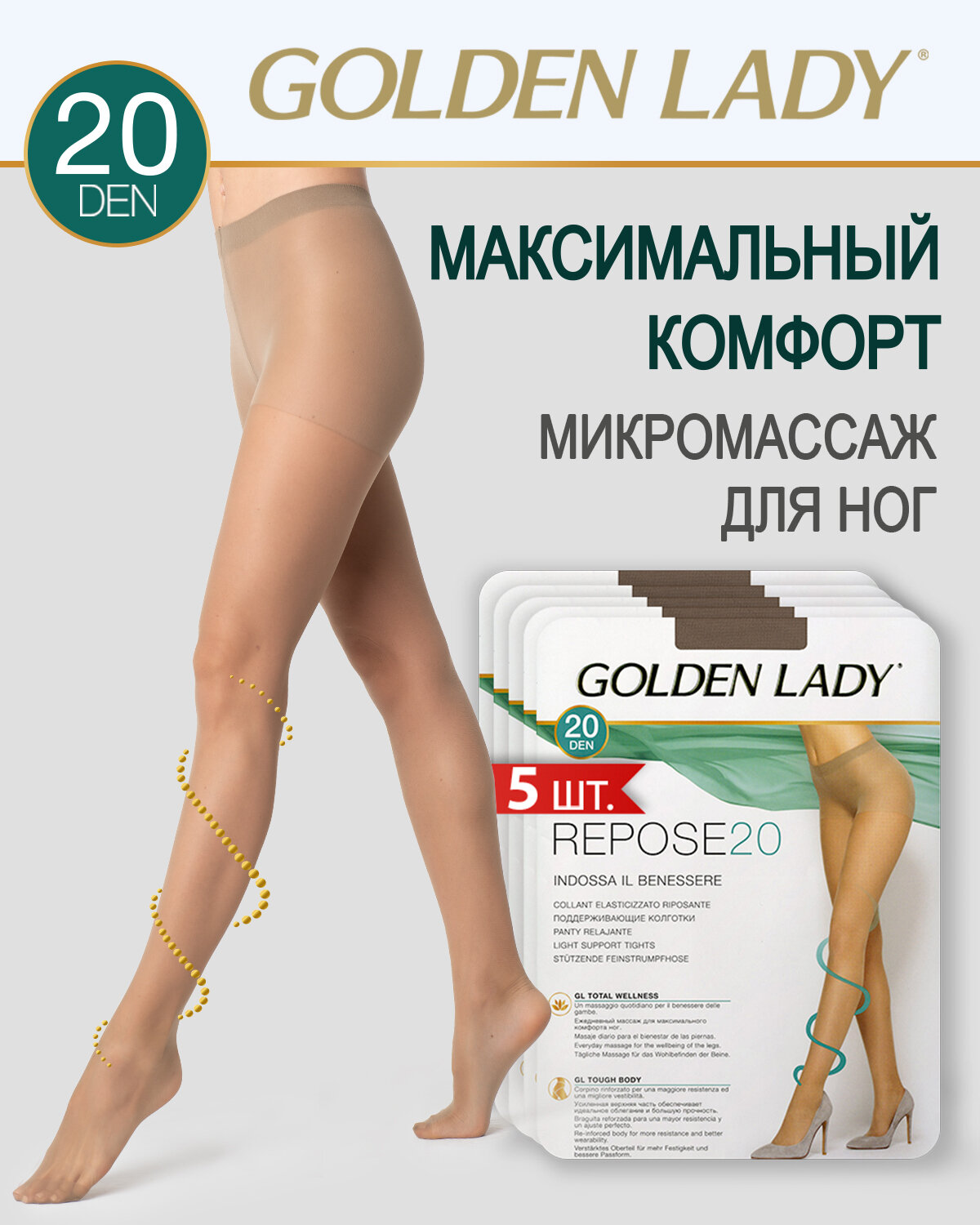Колготки женские Golden Lady GLd Repose 20 Daino 5 (спайка 5 шт)
