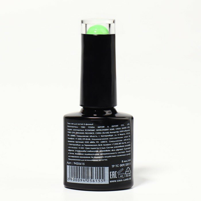 Купить Гель лак для ногтей, «GLOW IN THE DARK», 3-х фазный, 8мл, LED/UV, люминесцентный, цвет ярко-зелёный (22)