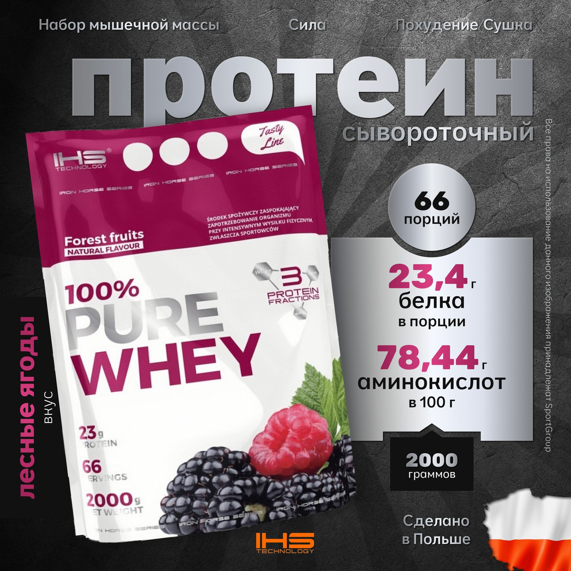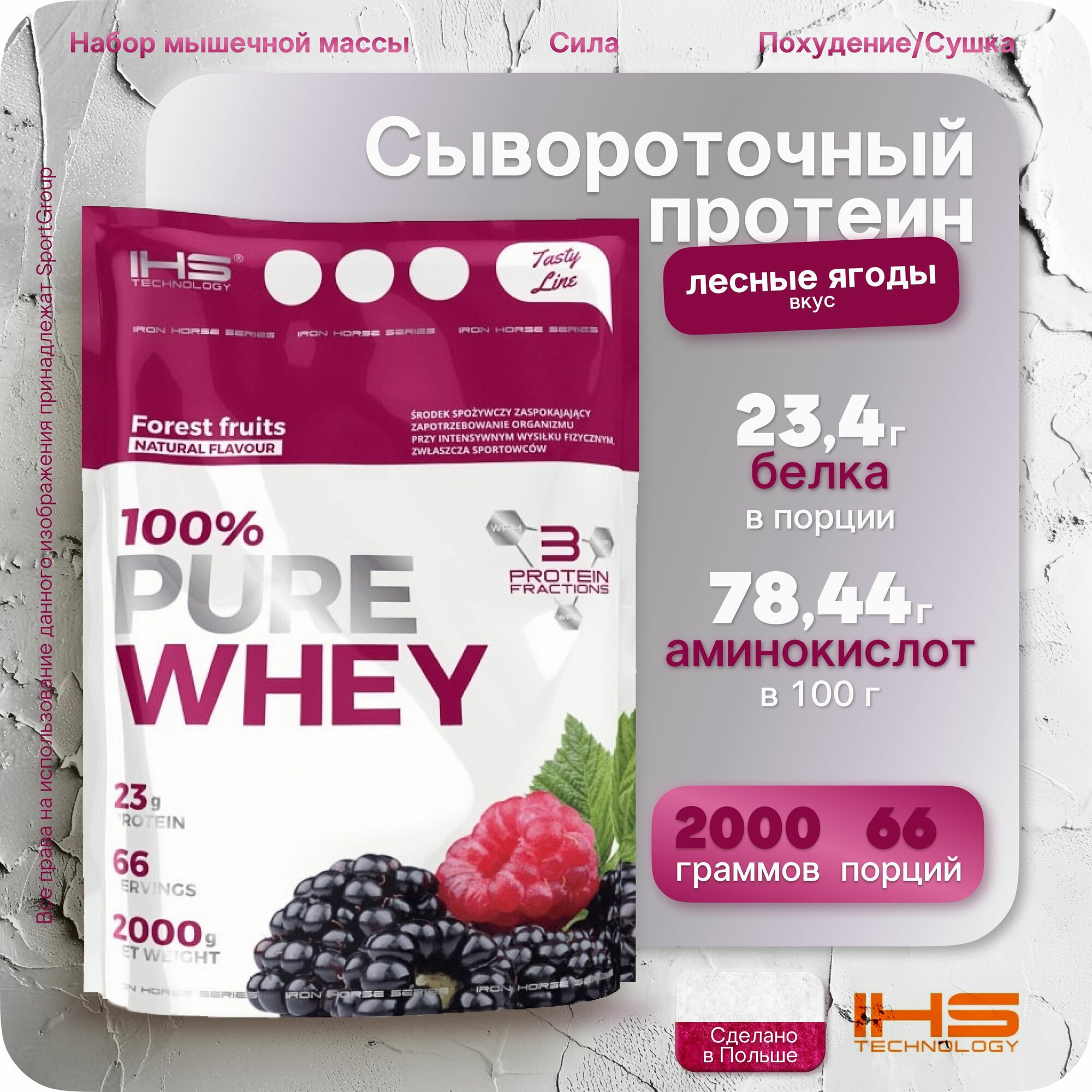 Протеин Сывороточный белок Изолят Гидролизат IHS Technology PURE Whey Protein 2000 г Лесные Ягоды 66 порций интересное: