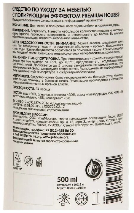 PREMIUM HOUSE PH полироль для мебели (0,5 л) PH уход/меб-0,5 интересное: