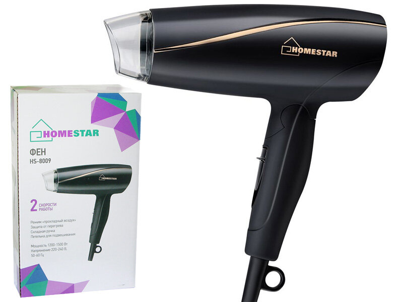 Фен Homestar, арт. HS-8009, черный, 1500Вт