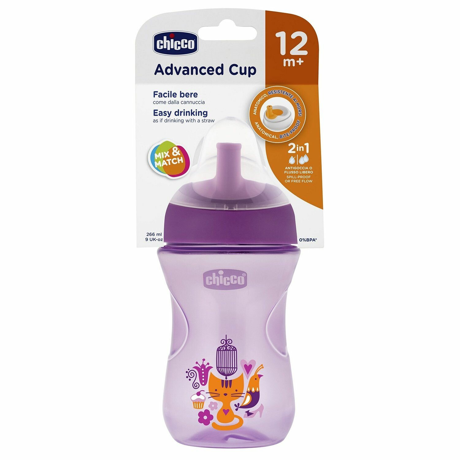 Чашка поильник CHICCO Advanced Cup (с трубочкой), 1шт., 12мес+, 266 мл., цвет сиреневый/кружка поильник/поильники детские/непроливайка поильник детский