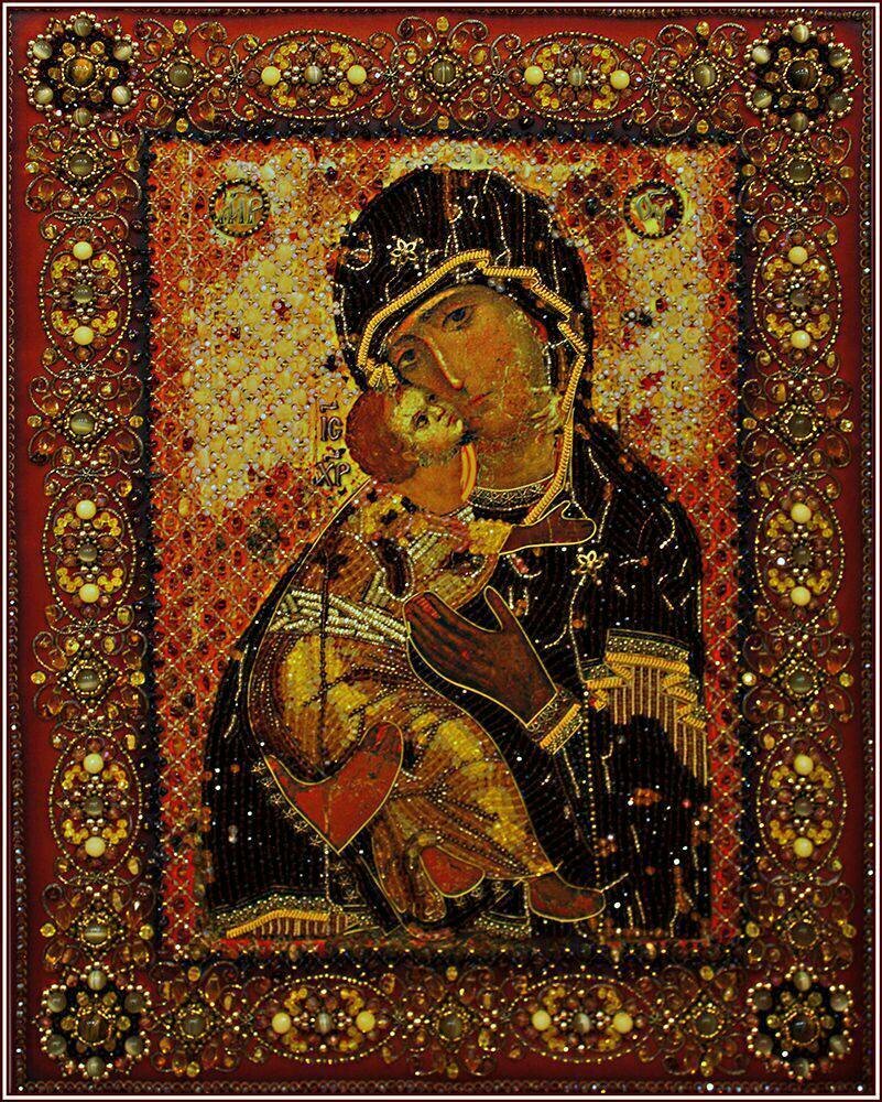 Набор для вышивания хрустальными бусинами и настоящими камнями, Образа в каменьях, "Владимирская Божия Матерь" (Храмовая икона) интересное: