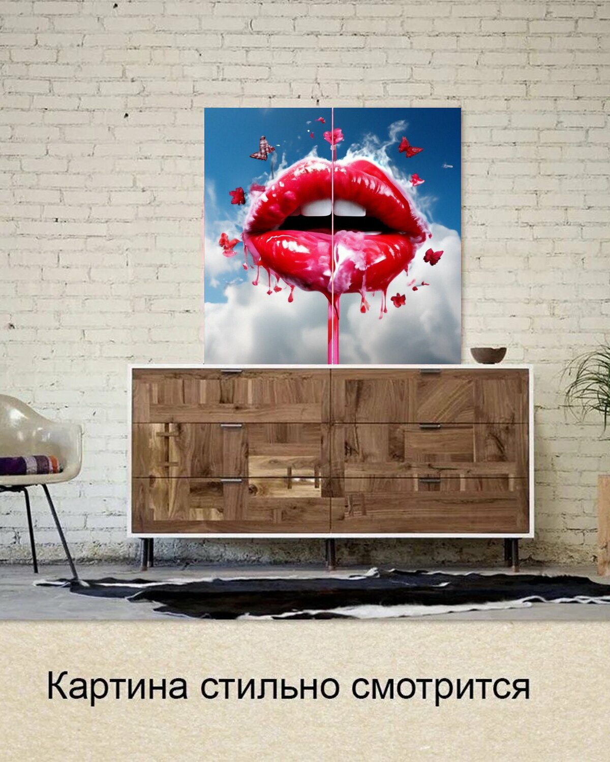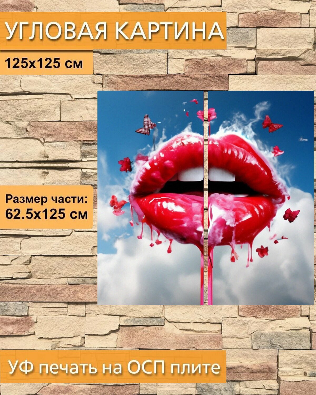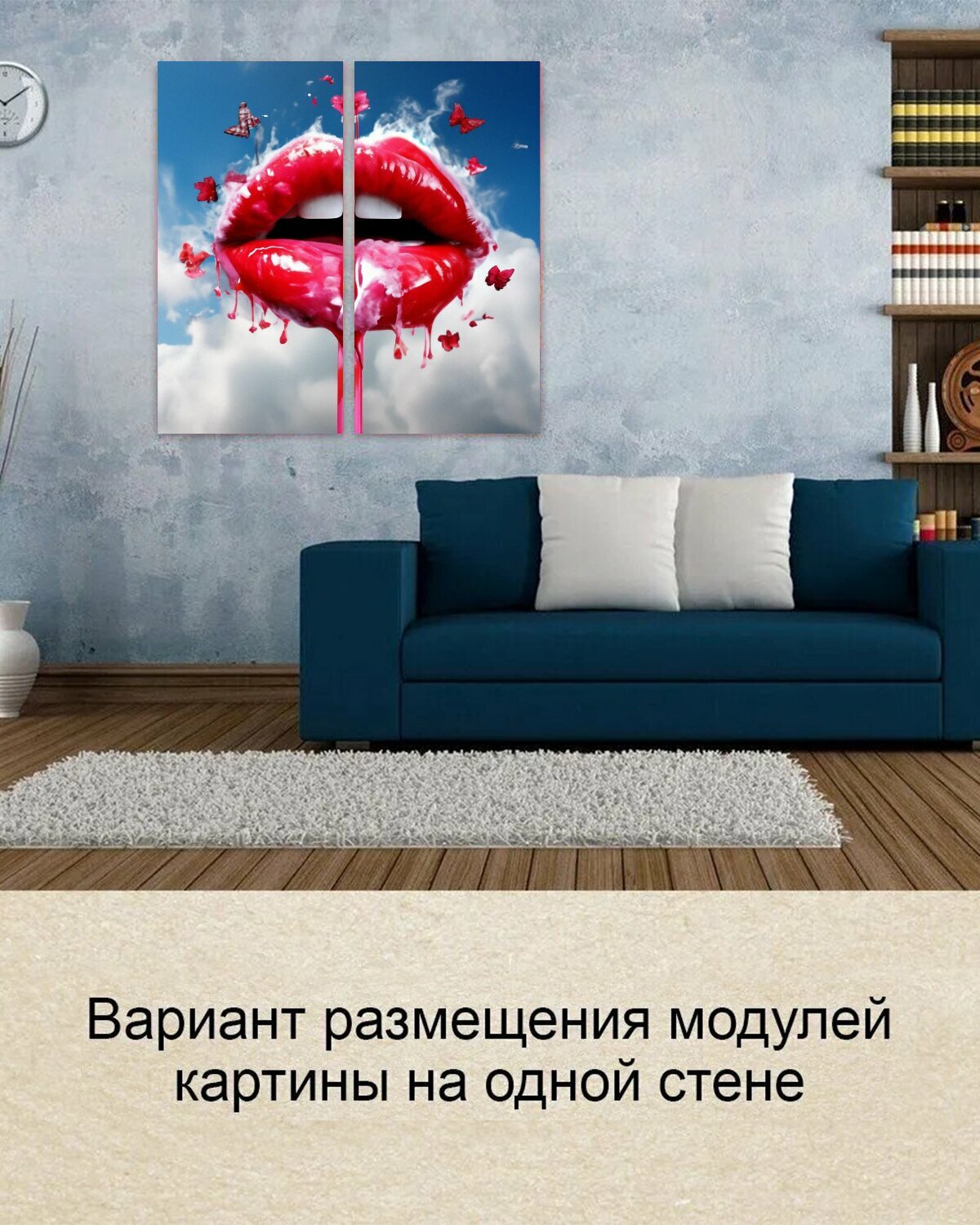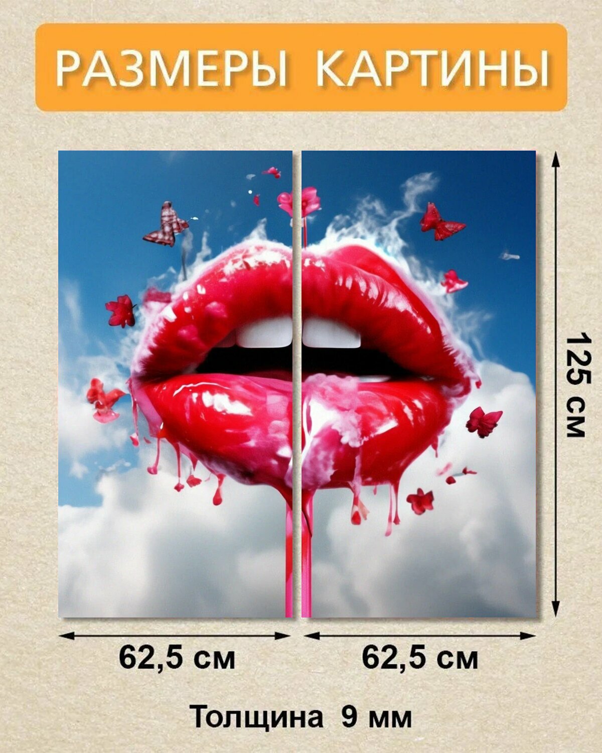 Купить Модульная картина на ОСП Девочкам "Красота, Губы женские, небо, красивое, женские губы" 125x125 см. 2 части для интерьера на стену
