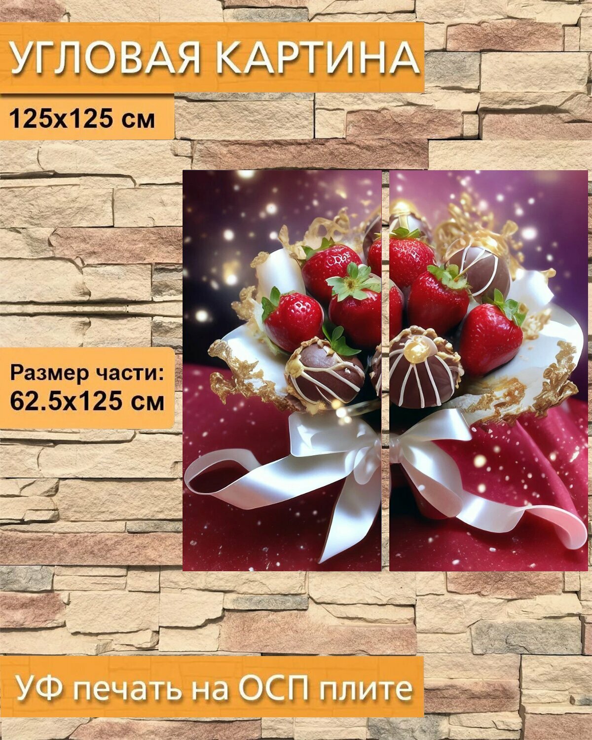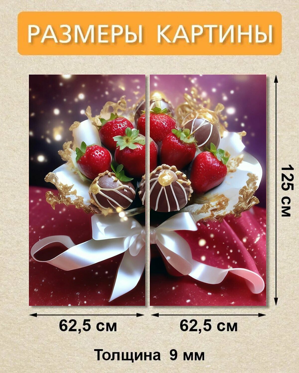 Модульная картина на ОСП Девочкам "Сладости, Конфеты, Сладкий букет , вкусный " 125x125 см. 2 части для интерьера на стену интересное: