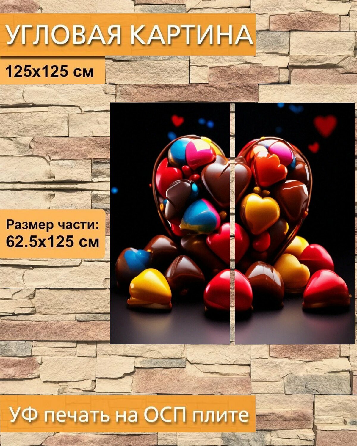 Модульная картина на ОСП Детям "Сердечки , Много сердец, Разноцветные сердца, много" 125x125 см. 2 части для интерьера на стену интересное: