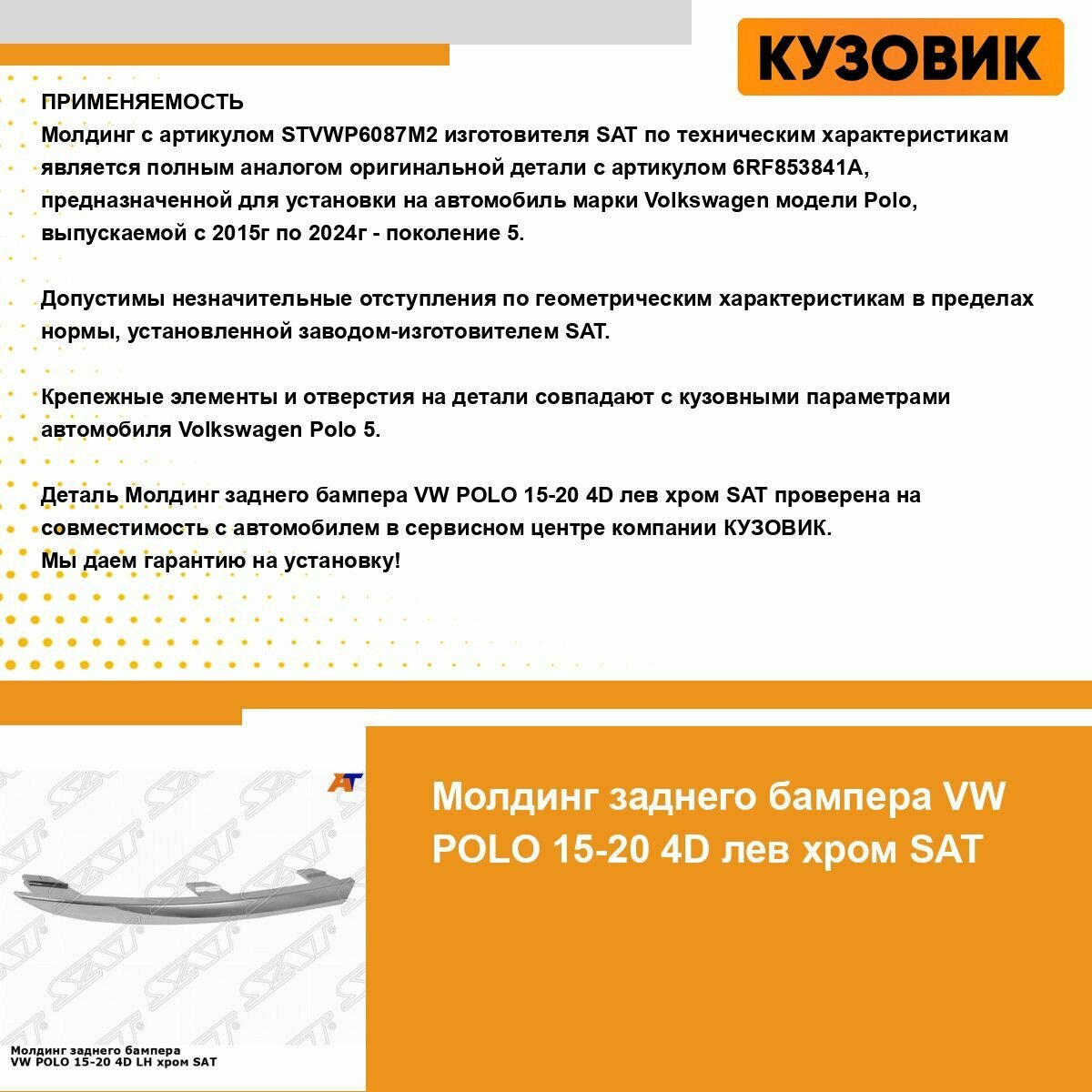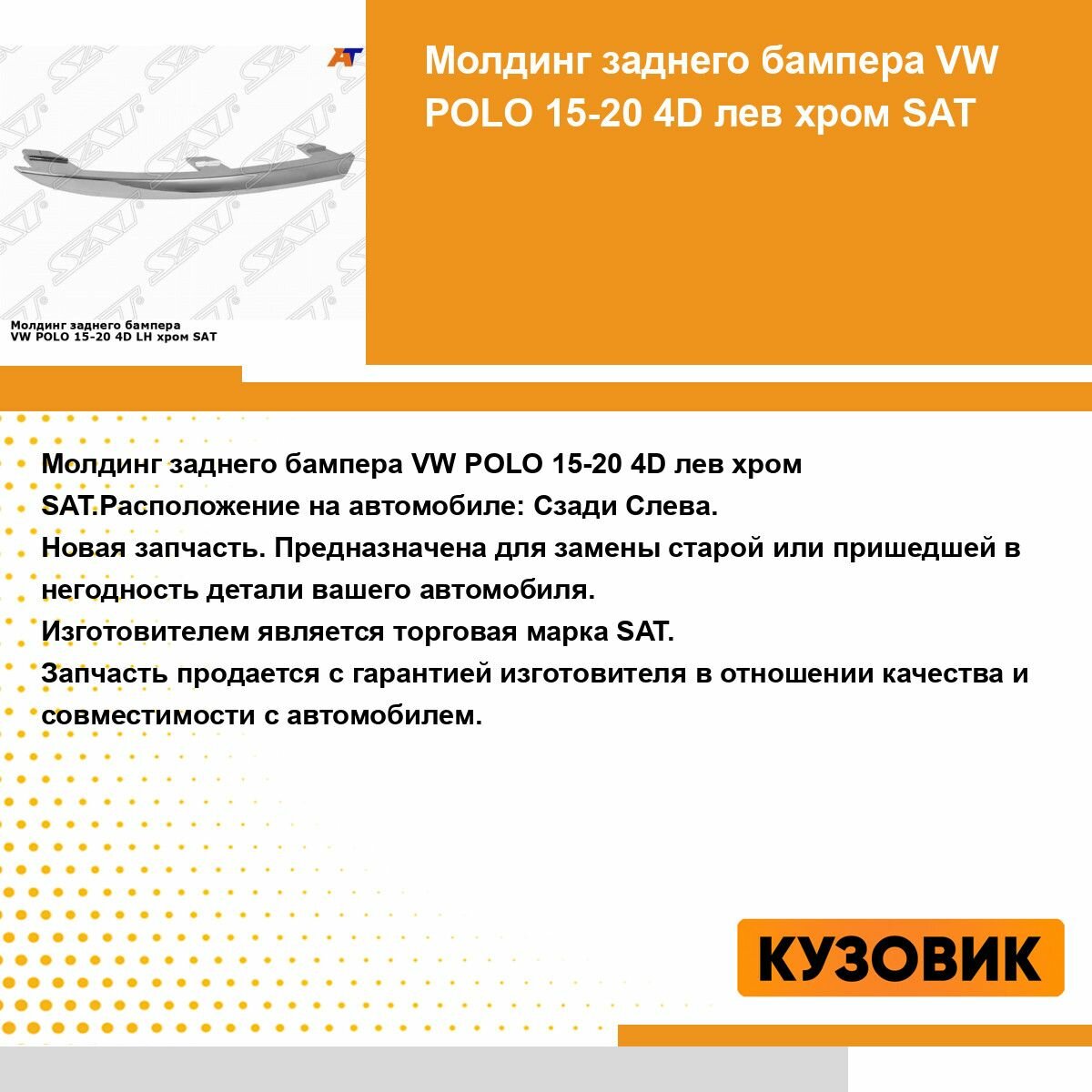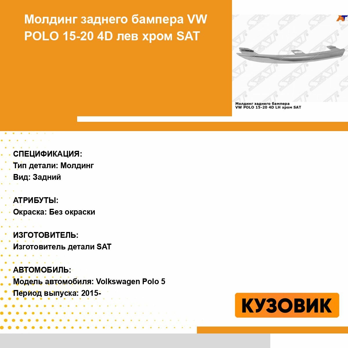 Молдинг заднего бампера для VW POLO 15-20 4D лев. хром SAT фольцваген поло интересное: