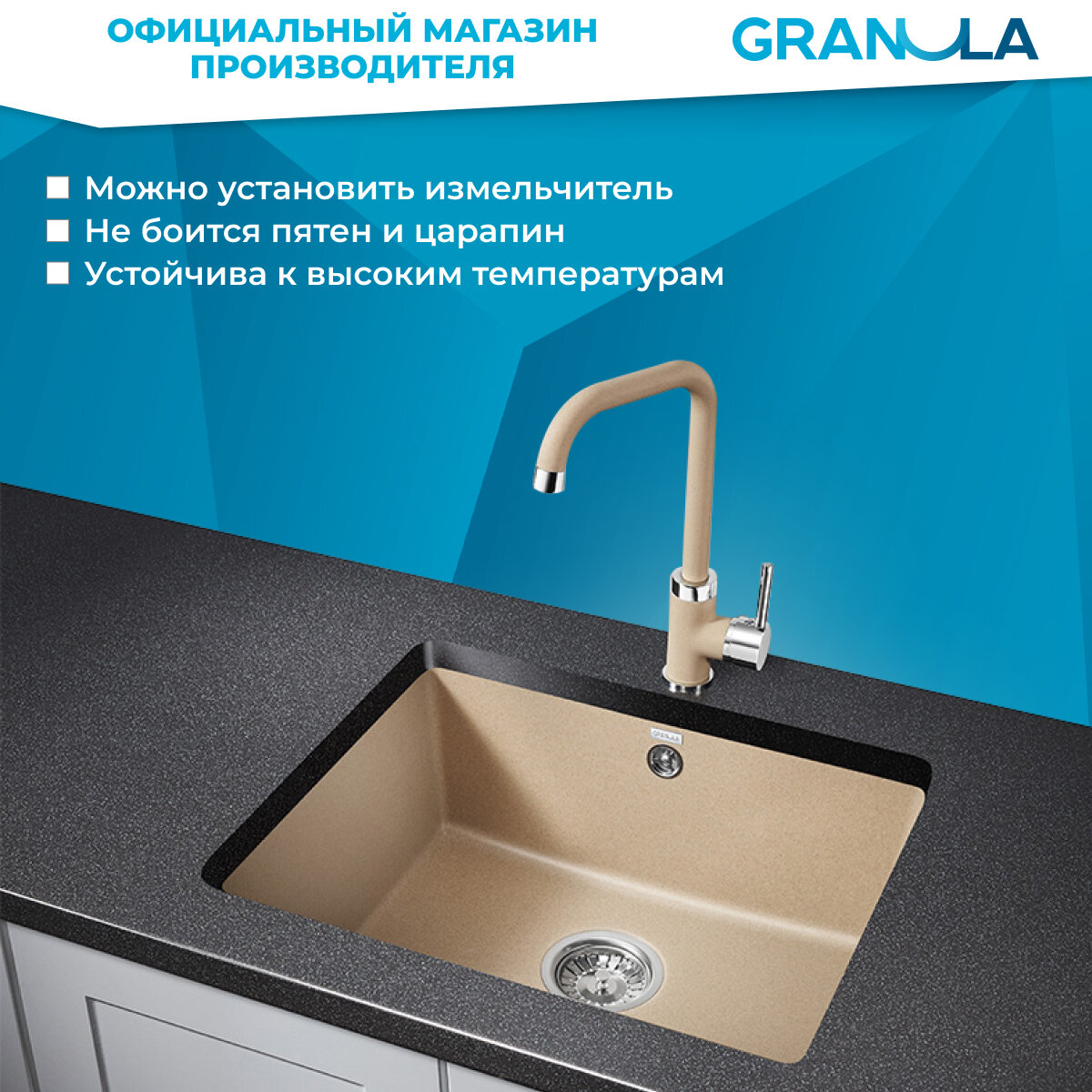 Ниже Вы можете прочитать отзывы на Мойка для кухни Granula 5551, песок (песочный), подстольная, кварцевая, раковина для кухни, ознакомится с подробными характеристиками, посмотреть интересные обзоры и фотографии на Мойка для кухни Granula 5551, песок (песочный), подстольная, кварцевая, раковина для кухни.