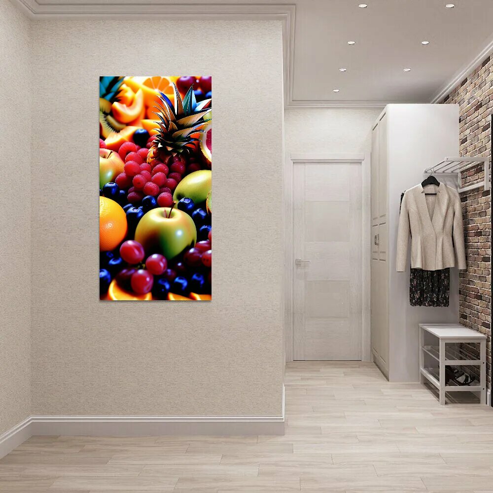 Вертикальная картина на ОСП детям "Еда, угощения, фрукты, яблоко, киви" 62x125 см. для интерьера на стену интересное: