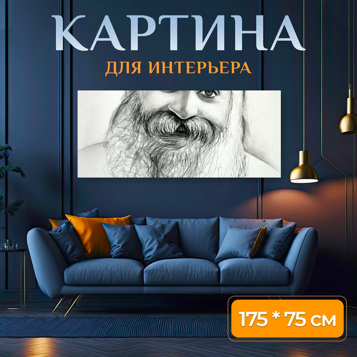 СохранитьКартина на холсте "Ошо, гуру, учитель" на подрамнике 175х75 см. для интерьера интересное:
