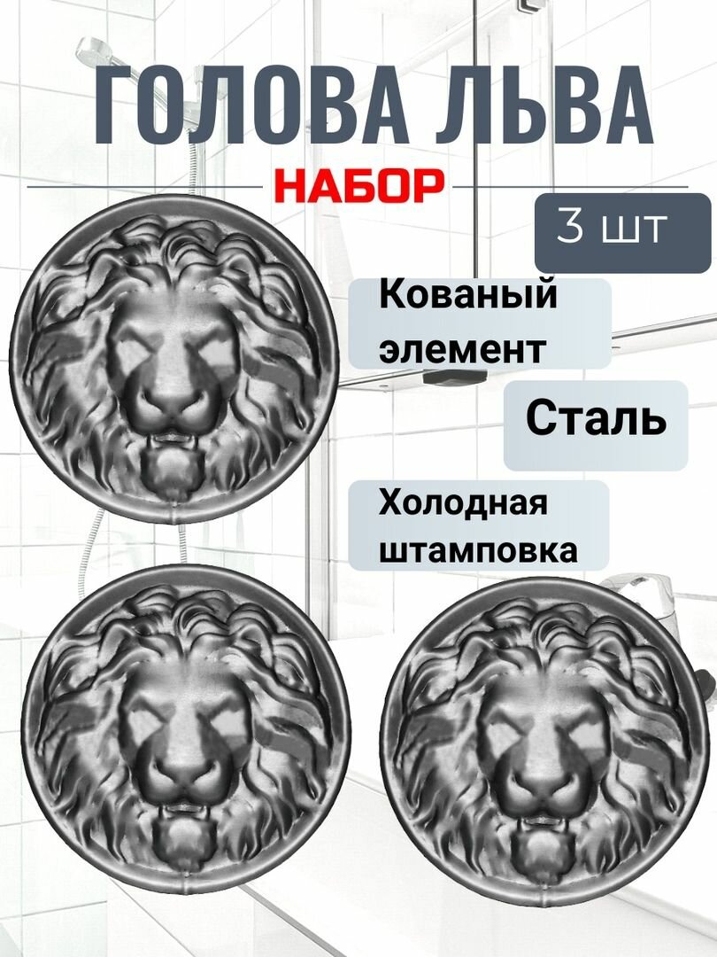Кованый элемент "Голова льва" набор 3 шт. Декоративная накладка для ограждений, ворот калиток. Сталь. интересное: