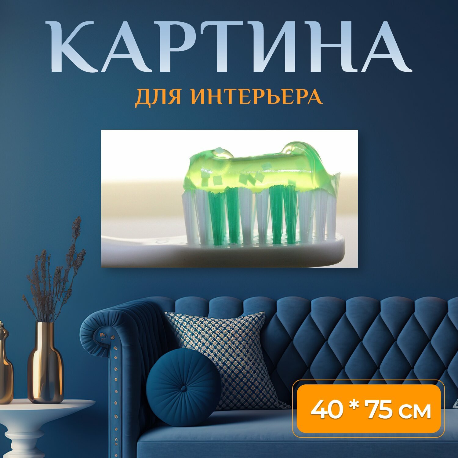 Картина на холсте "Зубная щетка, зубная паста, стоматология" на подрамнике 40х75 см. для интерьера