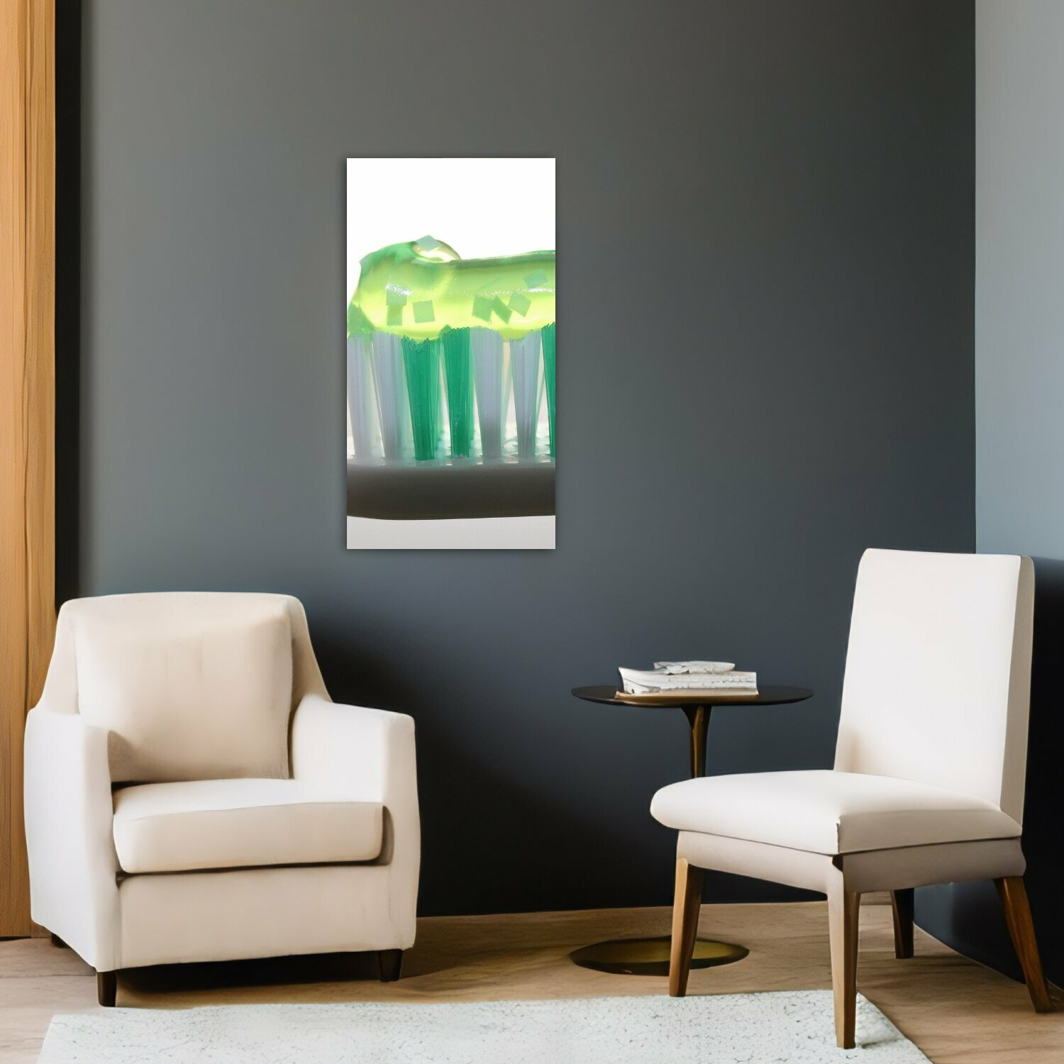 Вертикальная картина на ОСП "Зубная щетка, зубная паста, стоматология" 62x125 см. для интерьера на стену