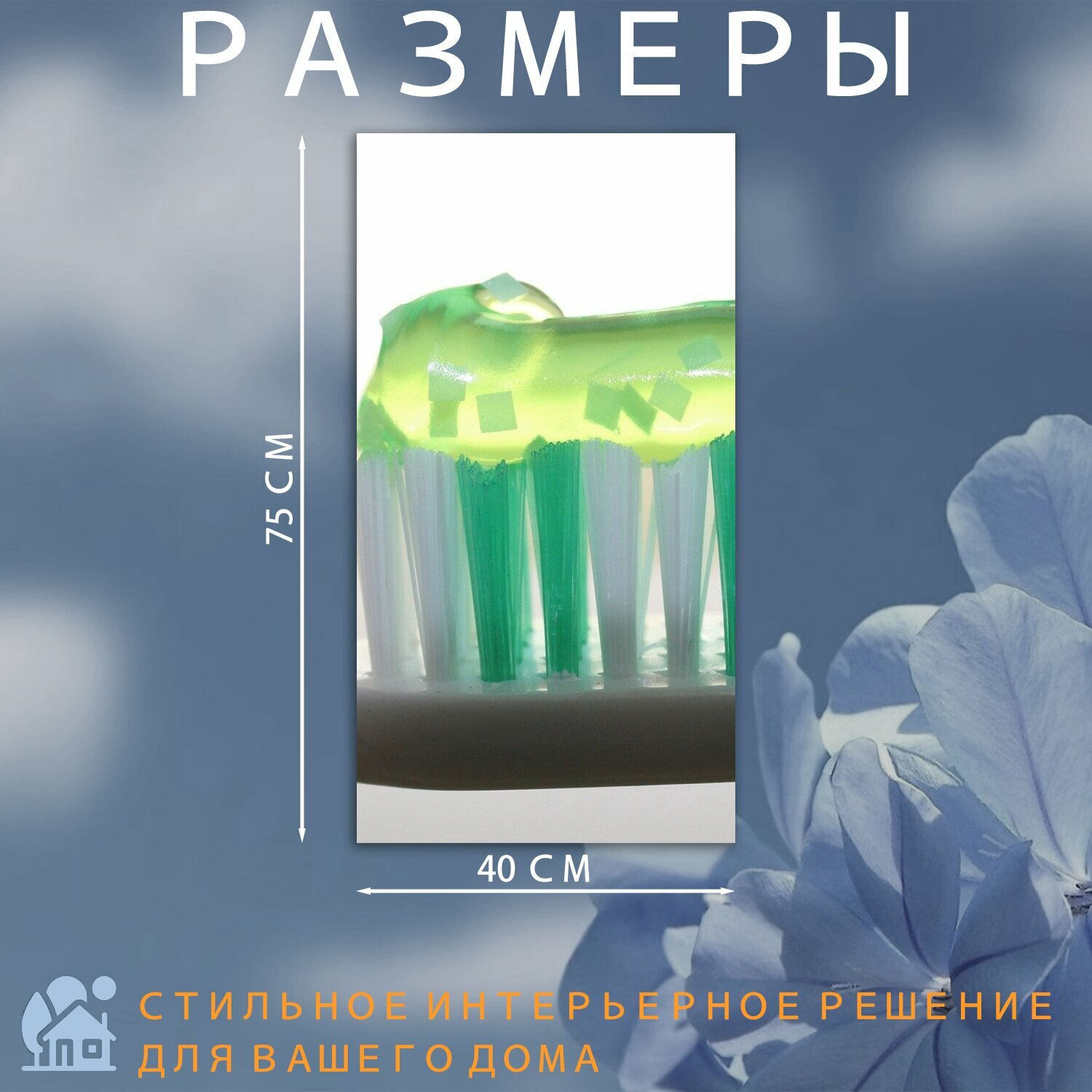 СохранитьКартина на холсте "Зубная щетка, зубная паста, стоматология" на подрамнике 40х75 см. для интерьера интересное: