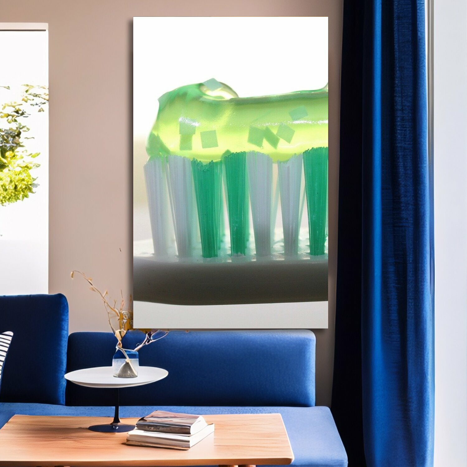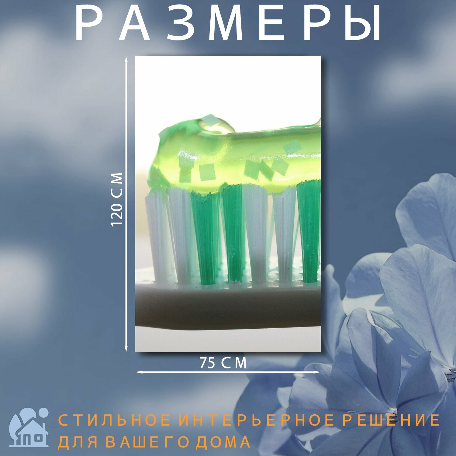 СохранитьКартина на холсте "Зубная щетка, зубная паста, стоматология" на подрамнике 75х120 см. для интерьера интересное:
