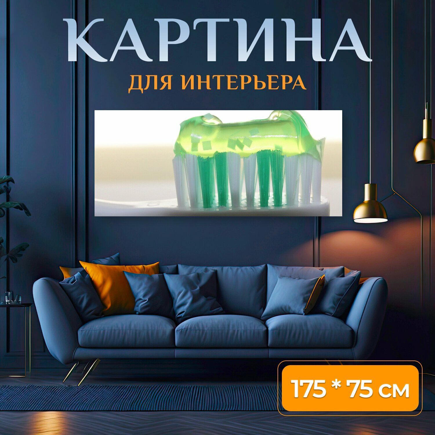Купить Картина на холсте "Зубная щетка, зубная паста, стоматология" на подрамнике 175х75 см. для интерьера
