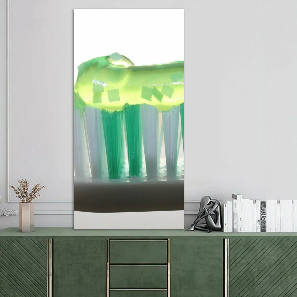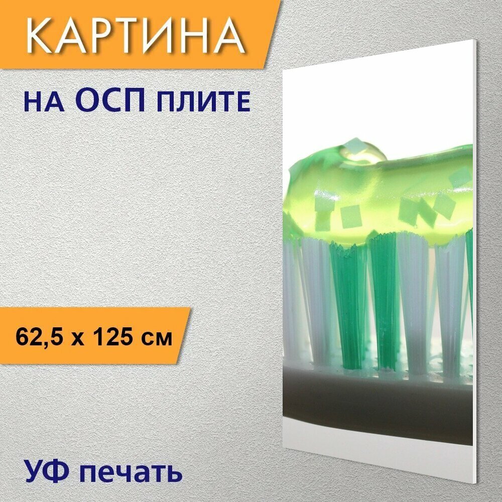 СохранитьВертикальная картина на ОСП "Зубная щетка, зубная паста, стоматология" 62x125 см. для интерьера на стену интересное: