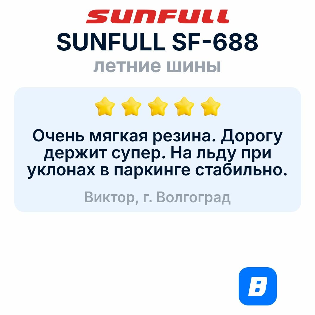 Ниже Вы можете прочитать отзывы на Sunfull SF-688 215/60 R16 95V, ознакомится с подробными характеристиками, посмотреть интересные обзоры и фотографии на Sunfull SF-688 215/60 R16 95V.