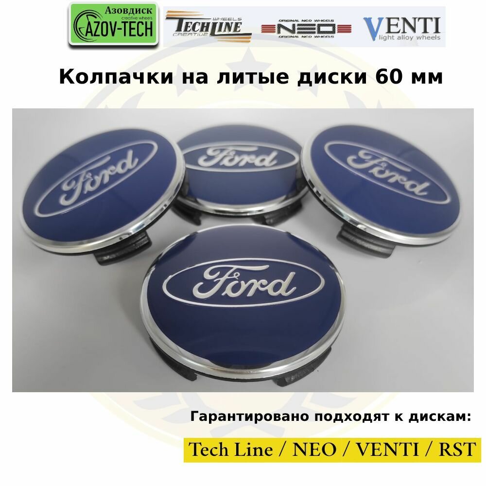 Колпачки на диски Азовдиск (Tech Line; Neo; Venti; RST) Ford - Форд 60 мм 4 шт. (комплект) интересное: