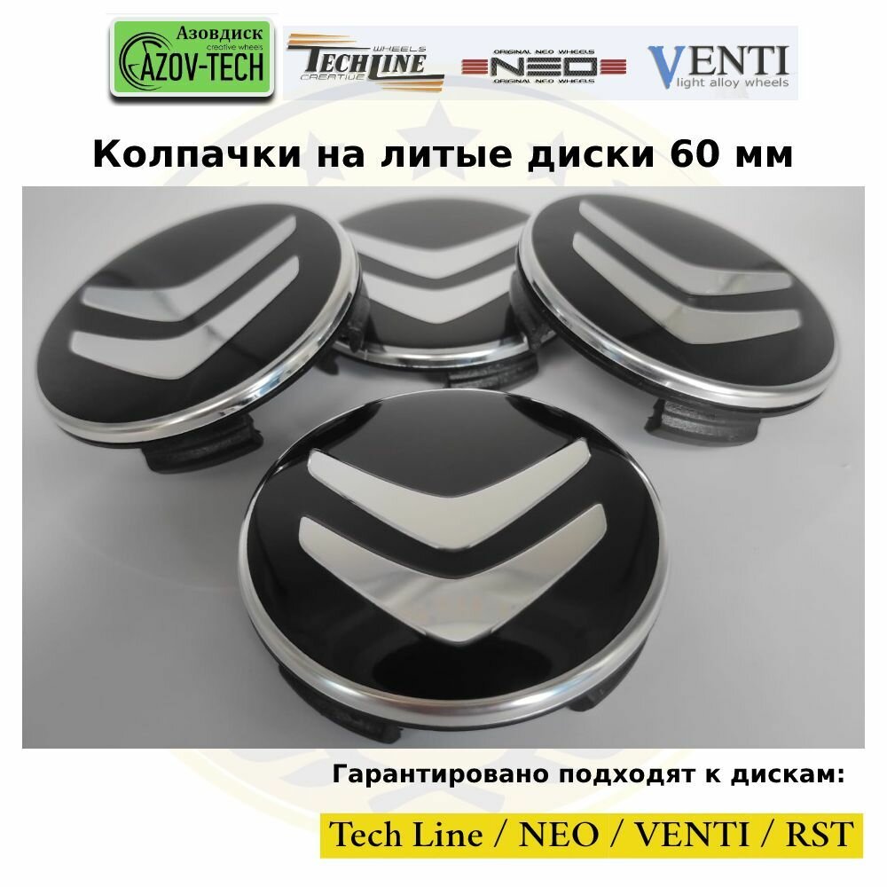 Колпачки заглушки на литые диски (Tech Line / Neo/ Venti / RST) Citroen - Ситроен 60 мм 4 шт. (комплект). интересное:
