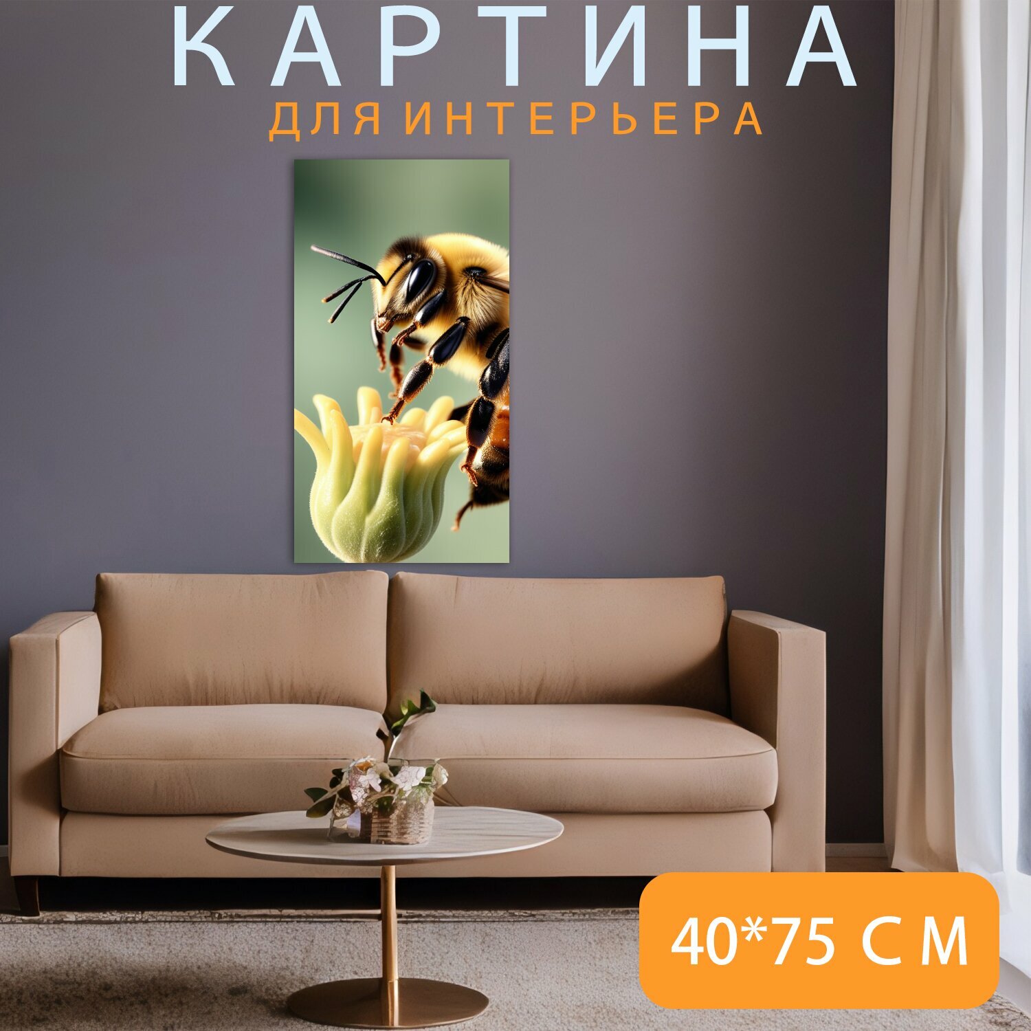 Купить Картина на холсте любителям природы "Насекомые, пчела, опыляющая" на подрамнике 40х75 см. для интерьера