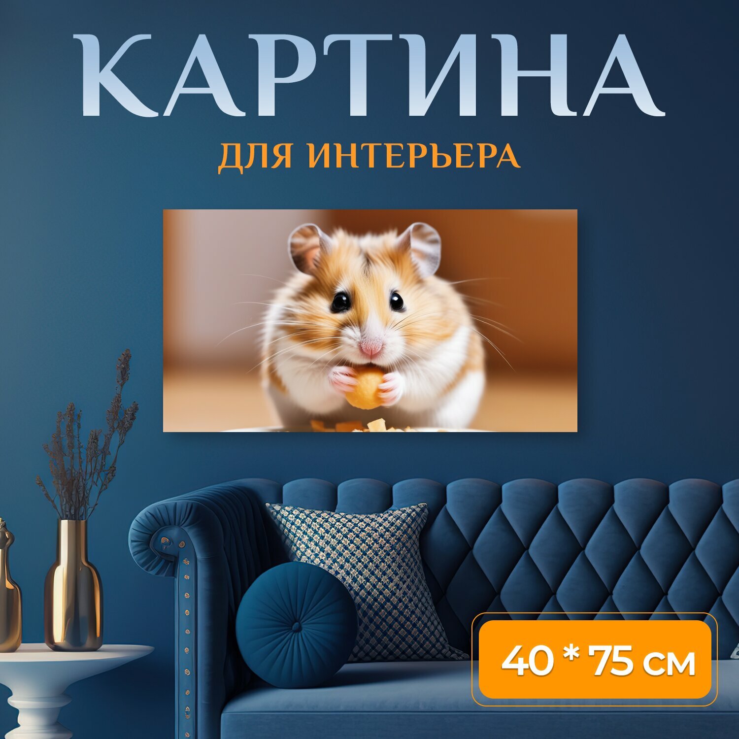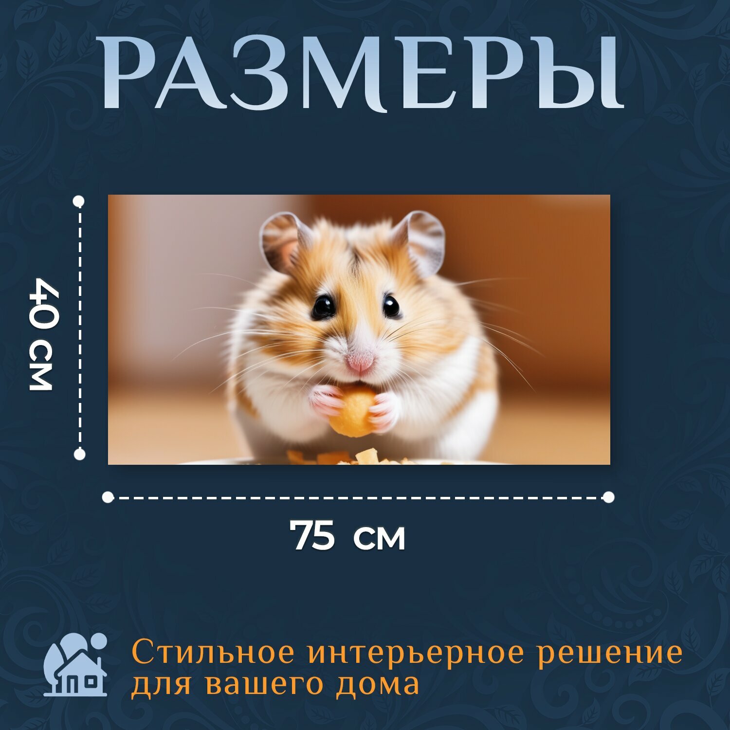 Купить Картина на холсте для любителей животных "Домашние питомцы, хомяк, голодный" на подрамнике 75х40 см. для интерьера