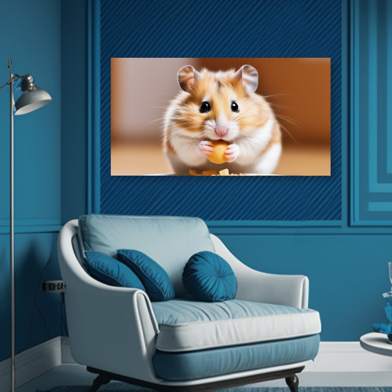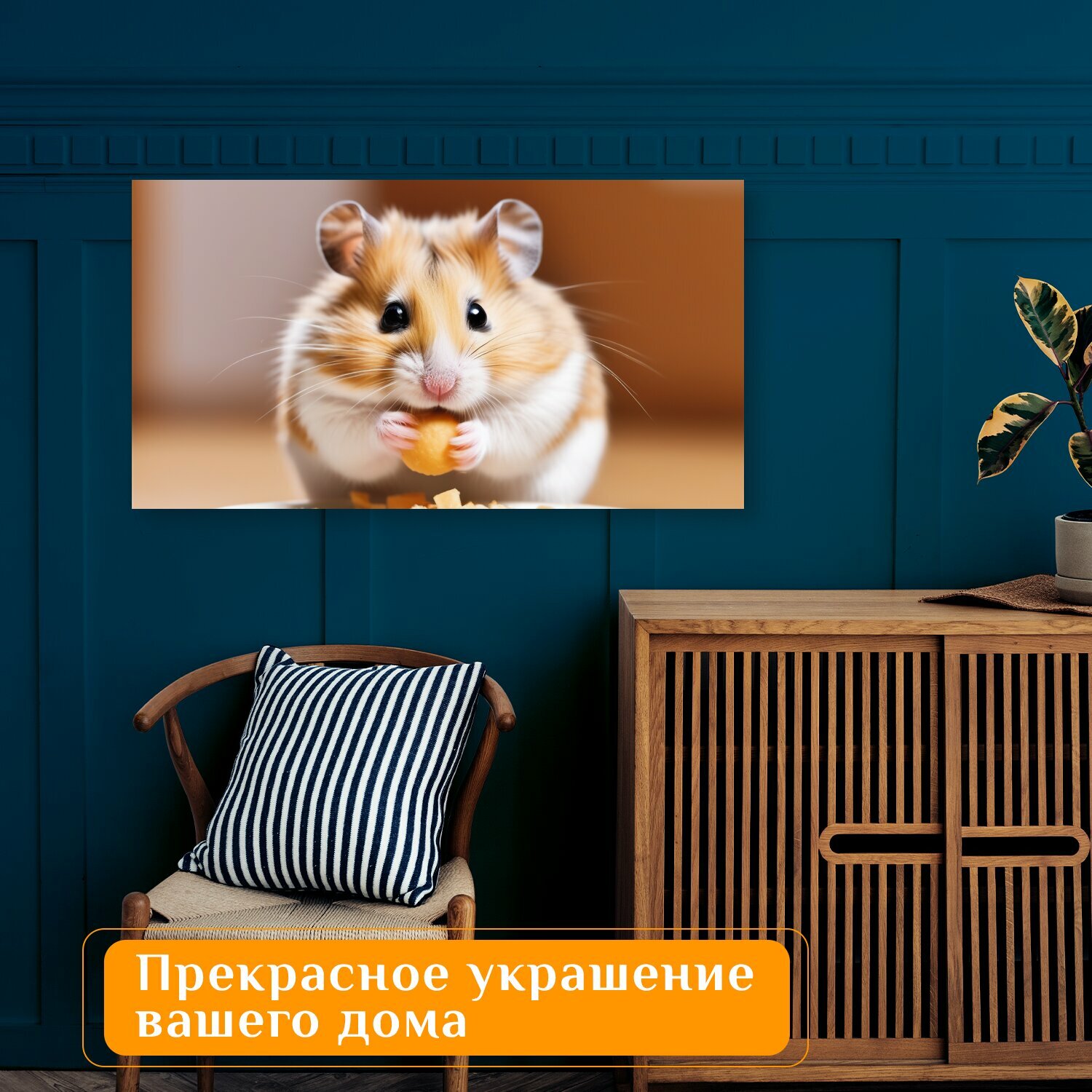 Картина на холсте для любителей животных "Домашние питомцы, хомяк, голодный" на подрамнике 75х40 см. для интерьера интересное: