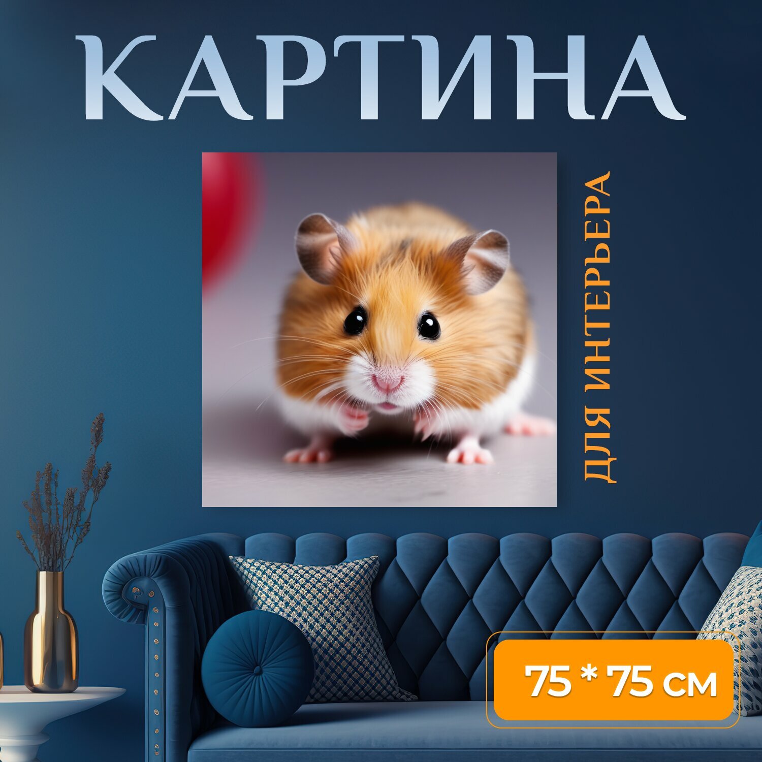 Картина на холсте для любителей животных "Домашние питомцы, хомяк, милый" на подрамнике 75х75 см. для интерьера интересное: