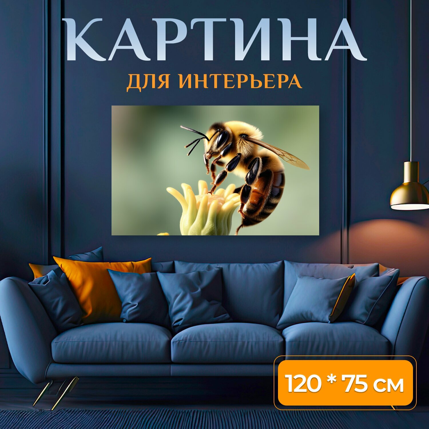 Картина на холсте любителям природы "Насекомые, пчела, опыляющая" на подрамнике 120х75 см. для интерьера интересное: