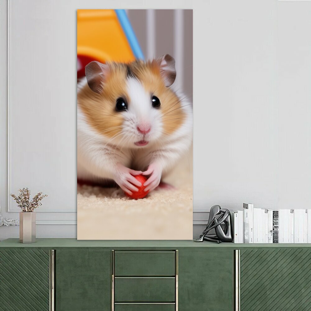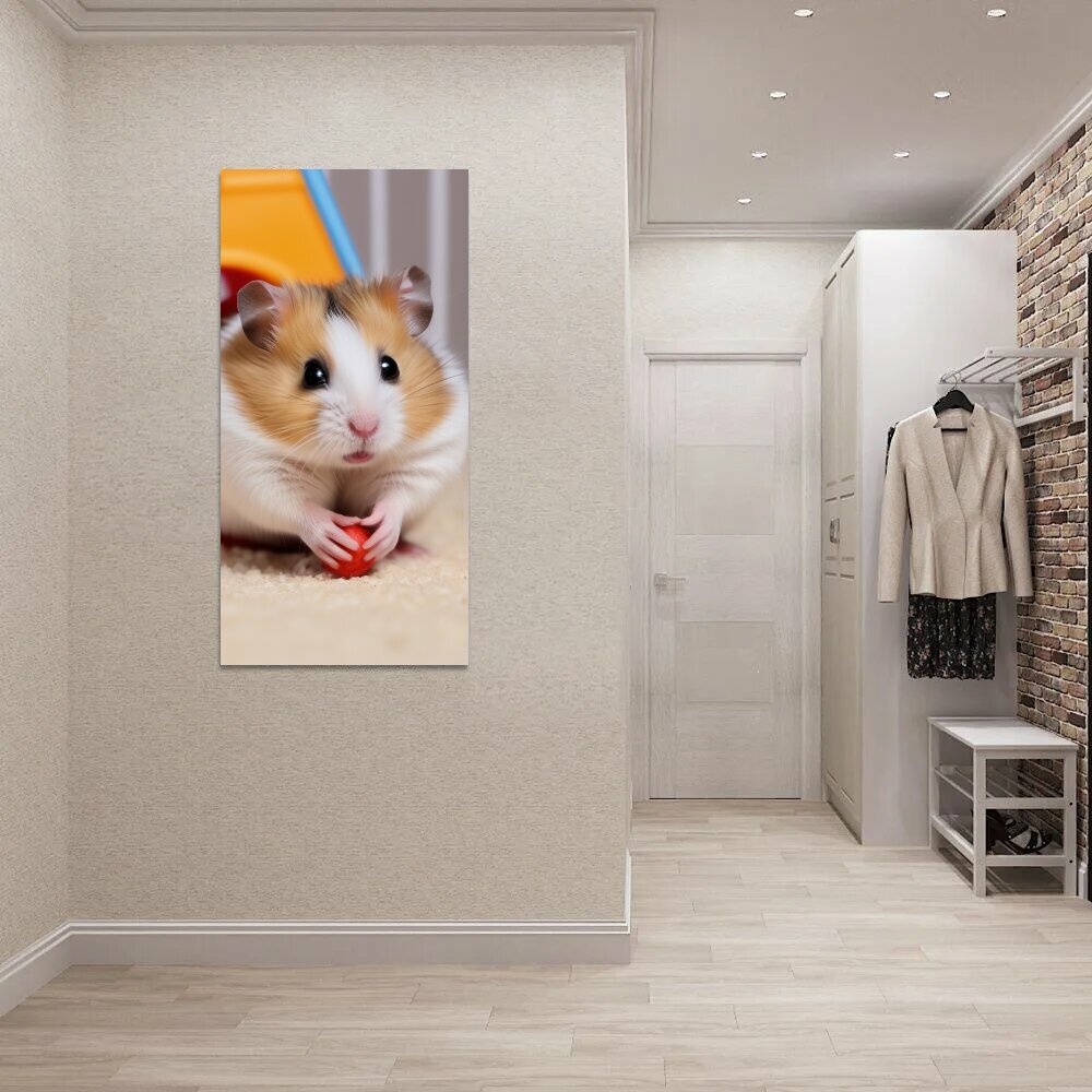 Купить Вертикальная картина на ОСП для любителей животных "Домашние питомцы, хомяк, играет" 62x125 см. для интерьера на стену