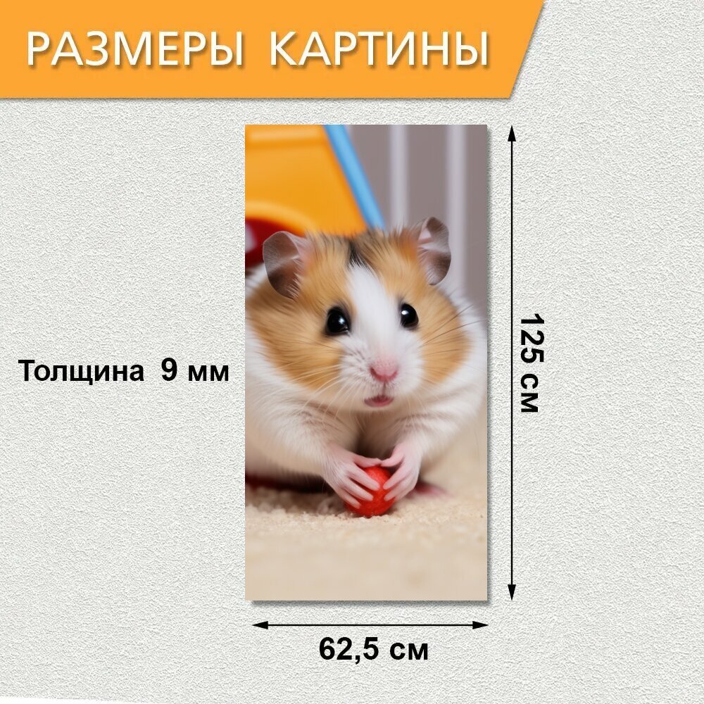 Вертикальная картина на ОСП для любителей животных "Домашние питомцы, хомяк, играет" 62x125 см. для интерьера на стену интересное:
