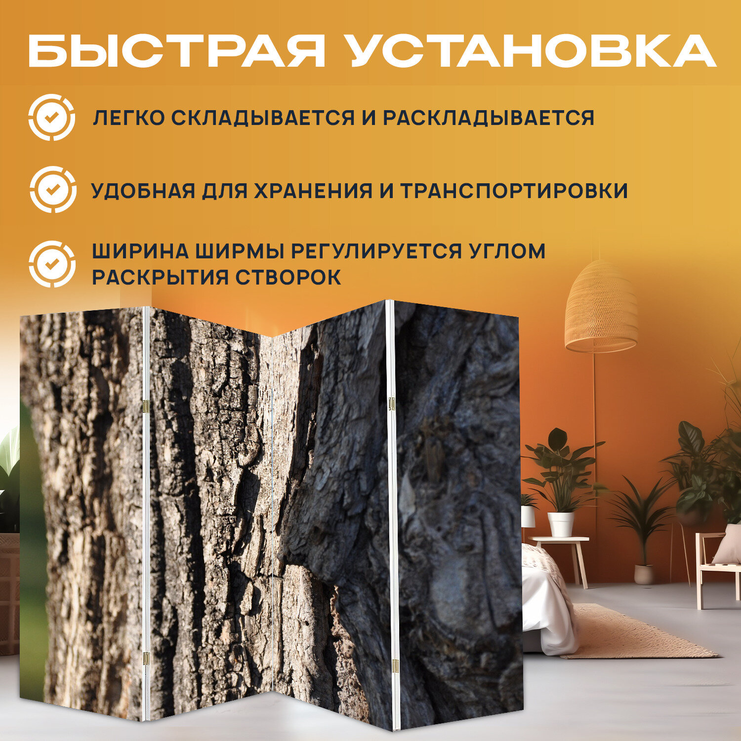 Купить Ширма "Дерево, бревно, лаять" раскладная перегородка для зонирования с принтом на холсте