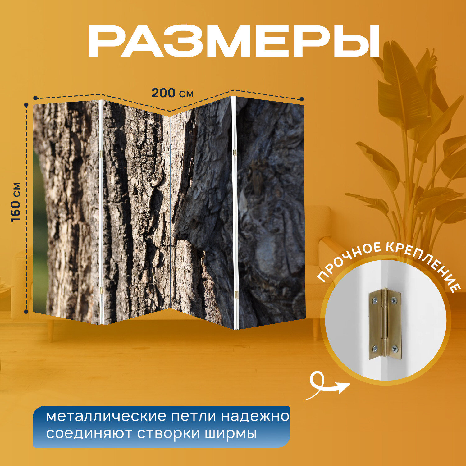 Ширма "Дерево, бревно, лаять" раскладная перегородка для зонирования с принтом на холсте интересное: