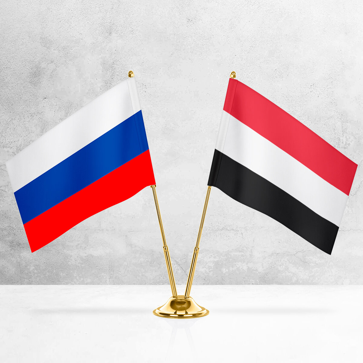 Купить Настольные флаги России и Йемена на металлической подставке под золото