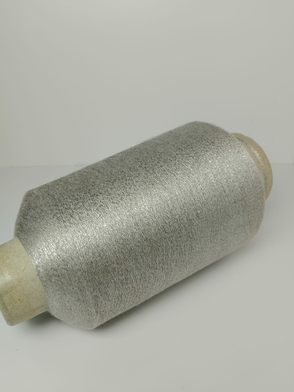 Вискозный люрекс, цвет серебро. Метраж: бобина 50гр-1200м