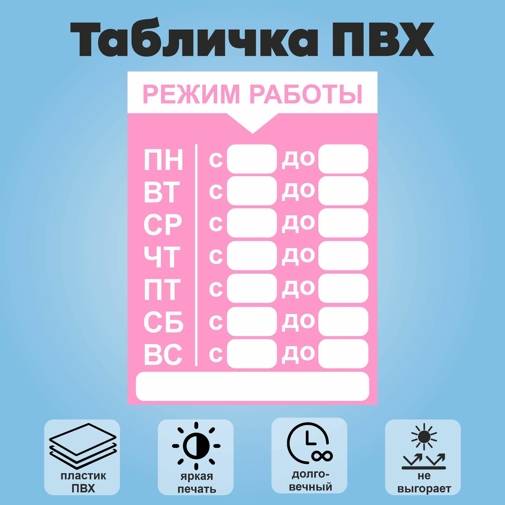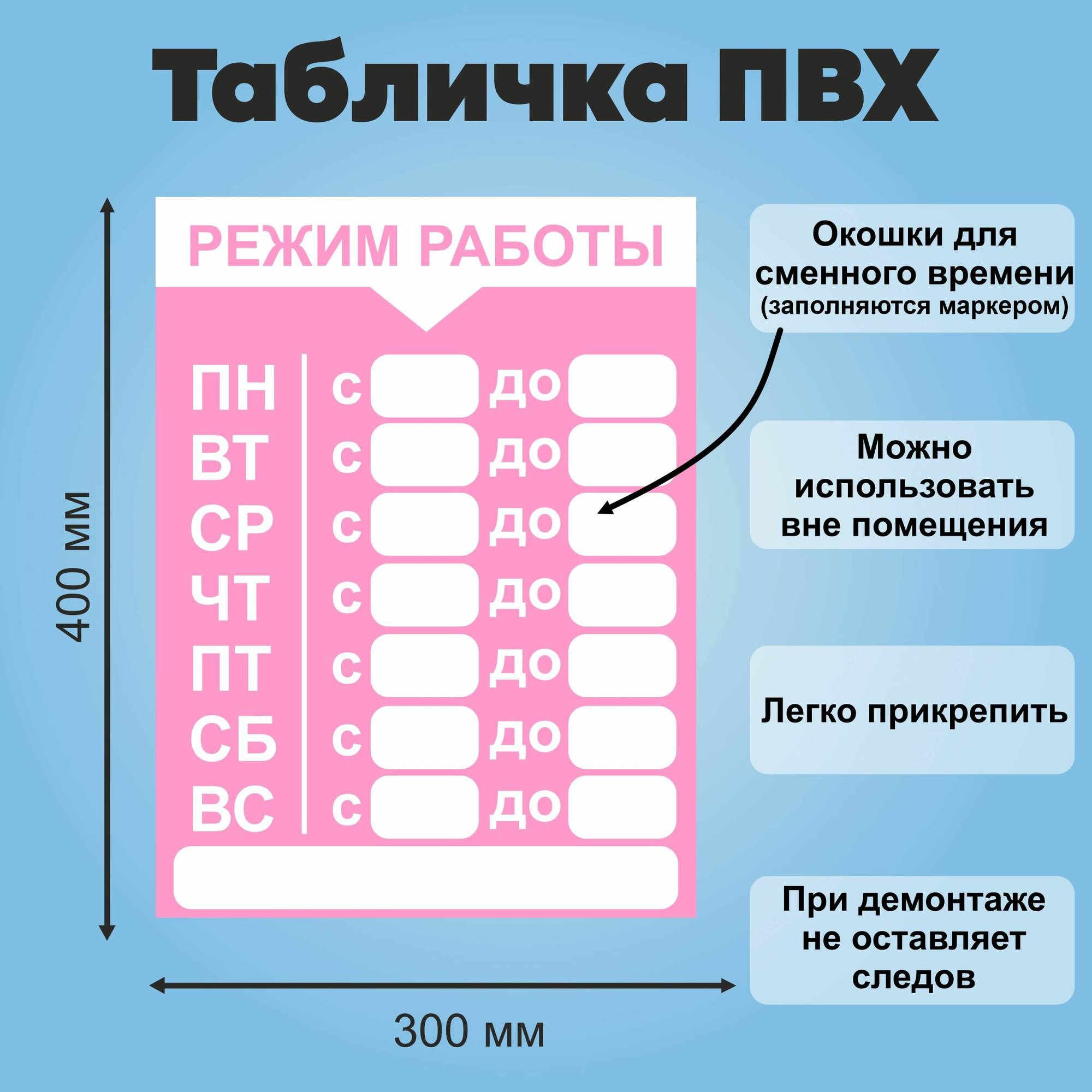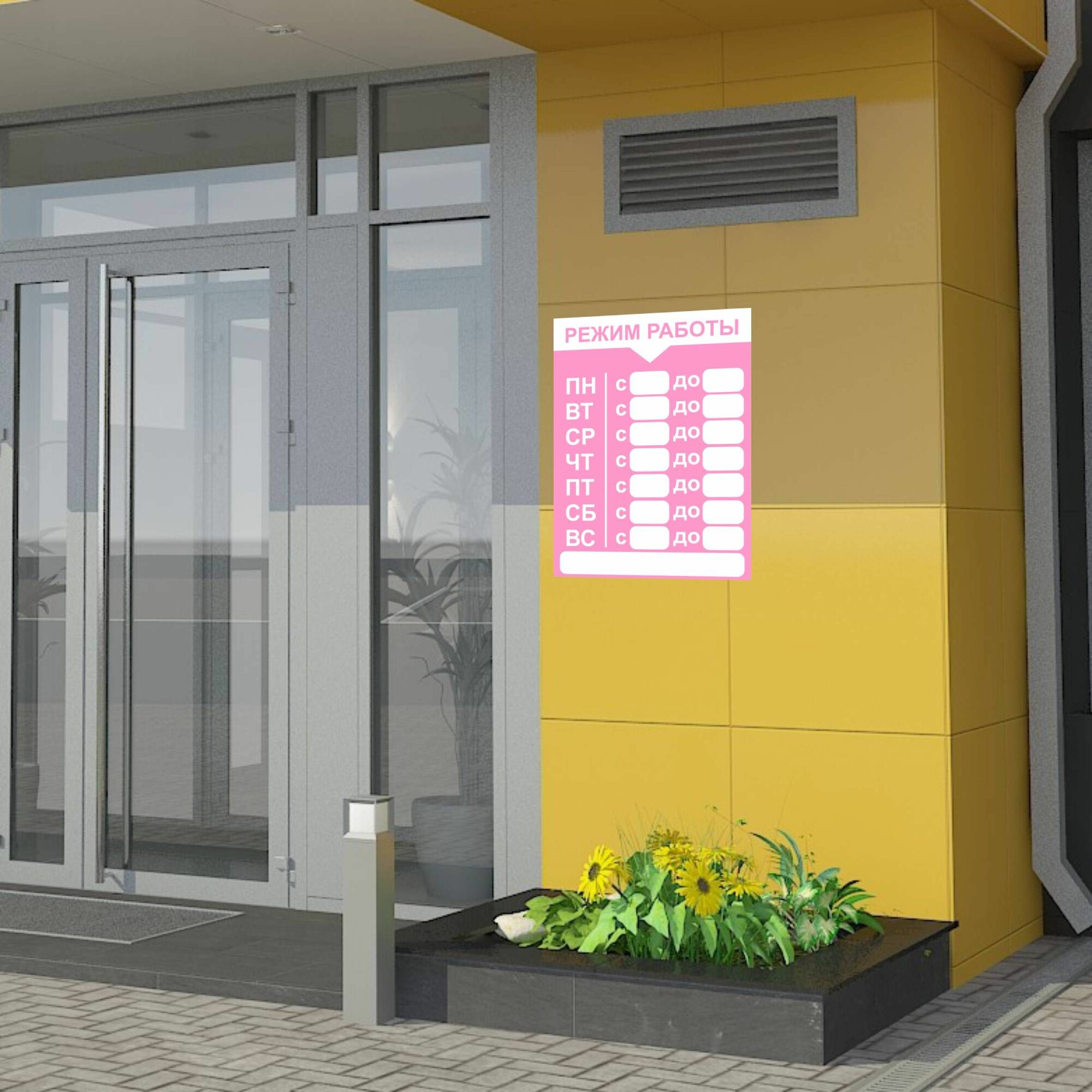 Табличка "Режим работы", с окошками для сменного времени, А3 интересное: