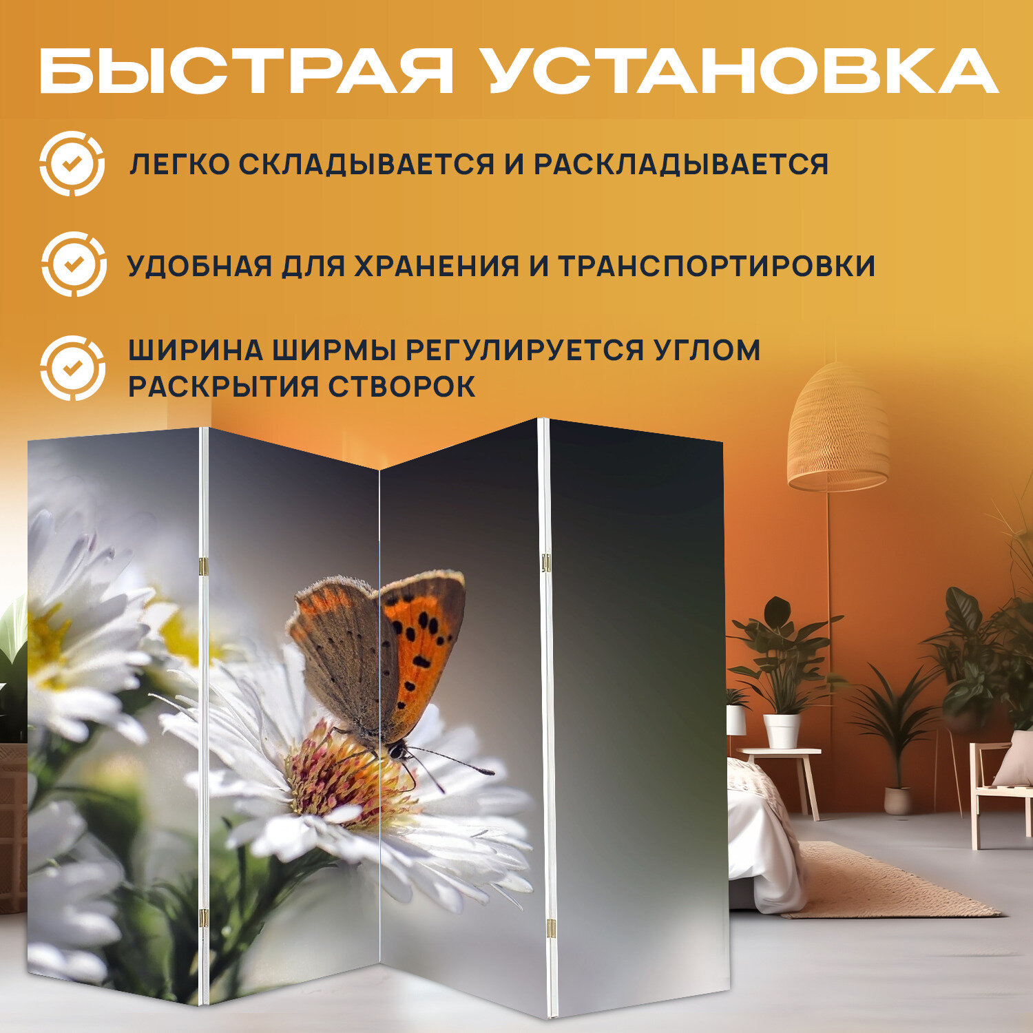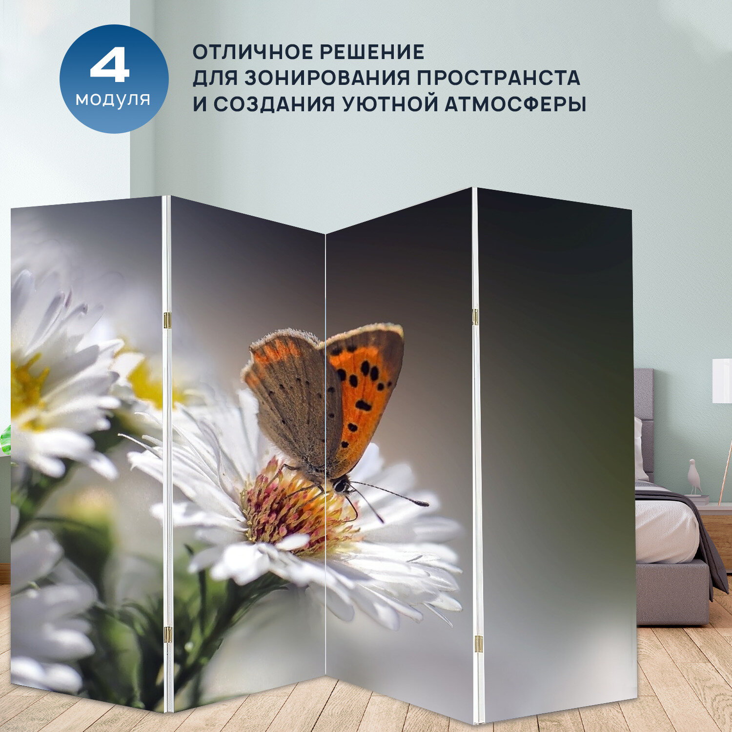 Ширма "Бабочка, насекомое, опылять" раскладная перегородка для зонирования с принтом на холсте интересное: