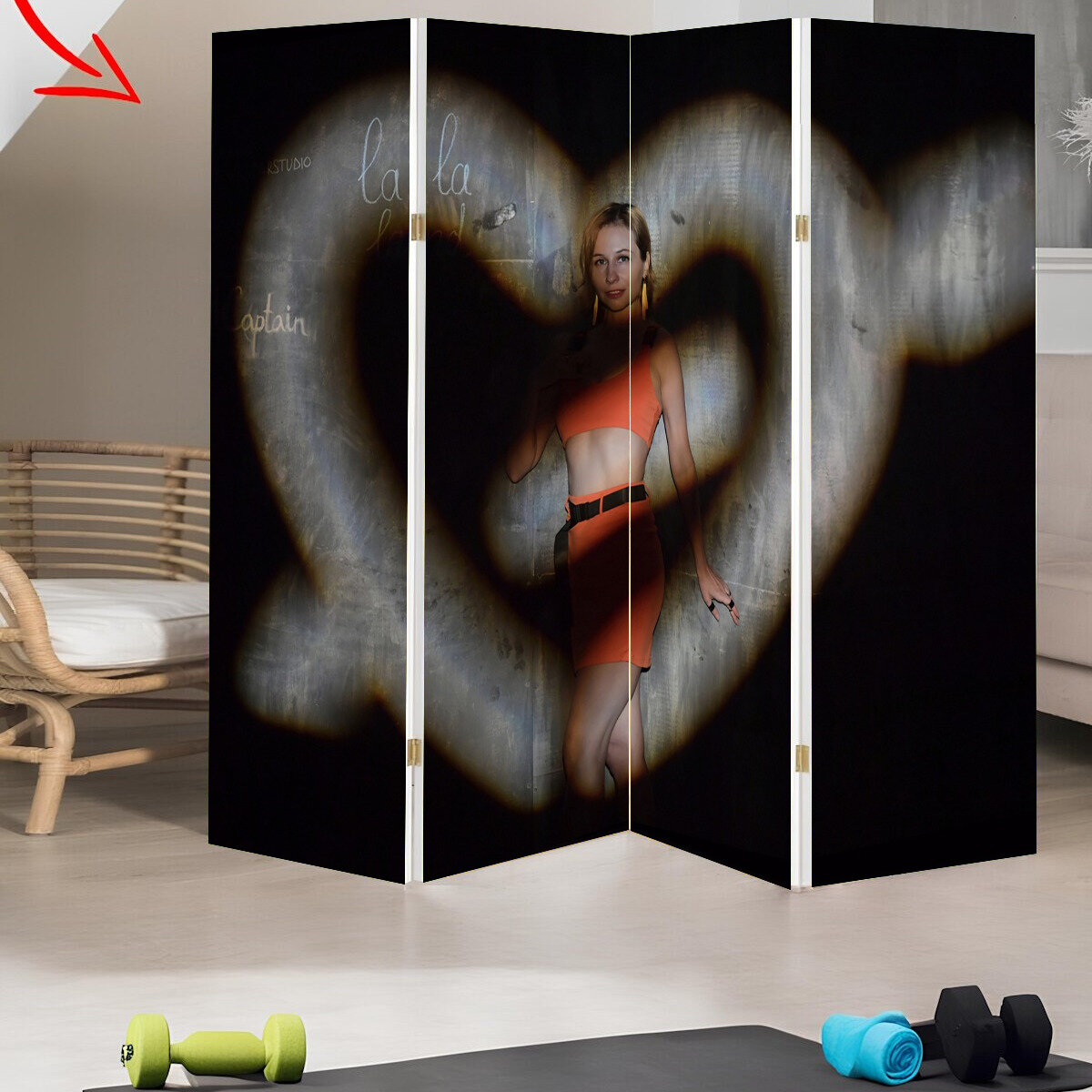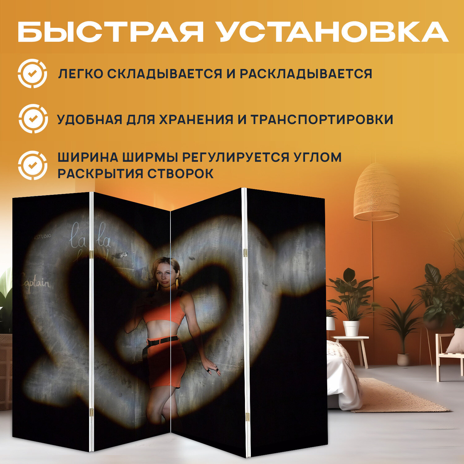 Купить Ширма "Сердце, свет, проектор" раскладная перегородка для зонирования с принтом на холсте