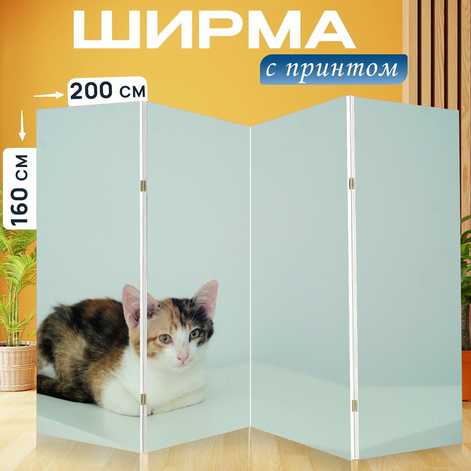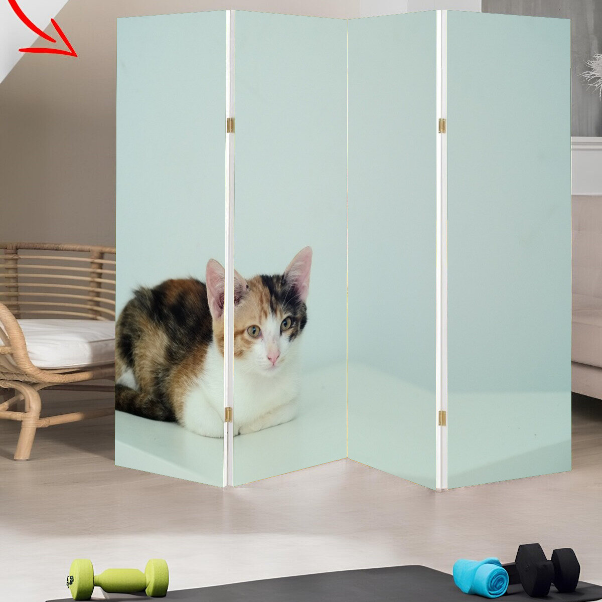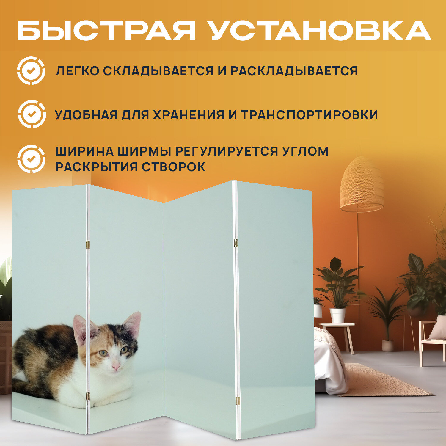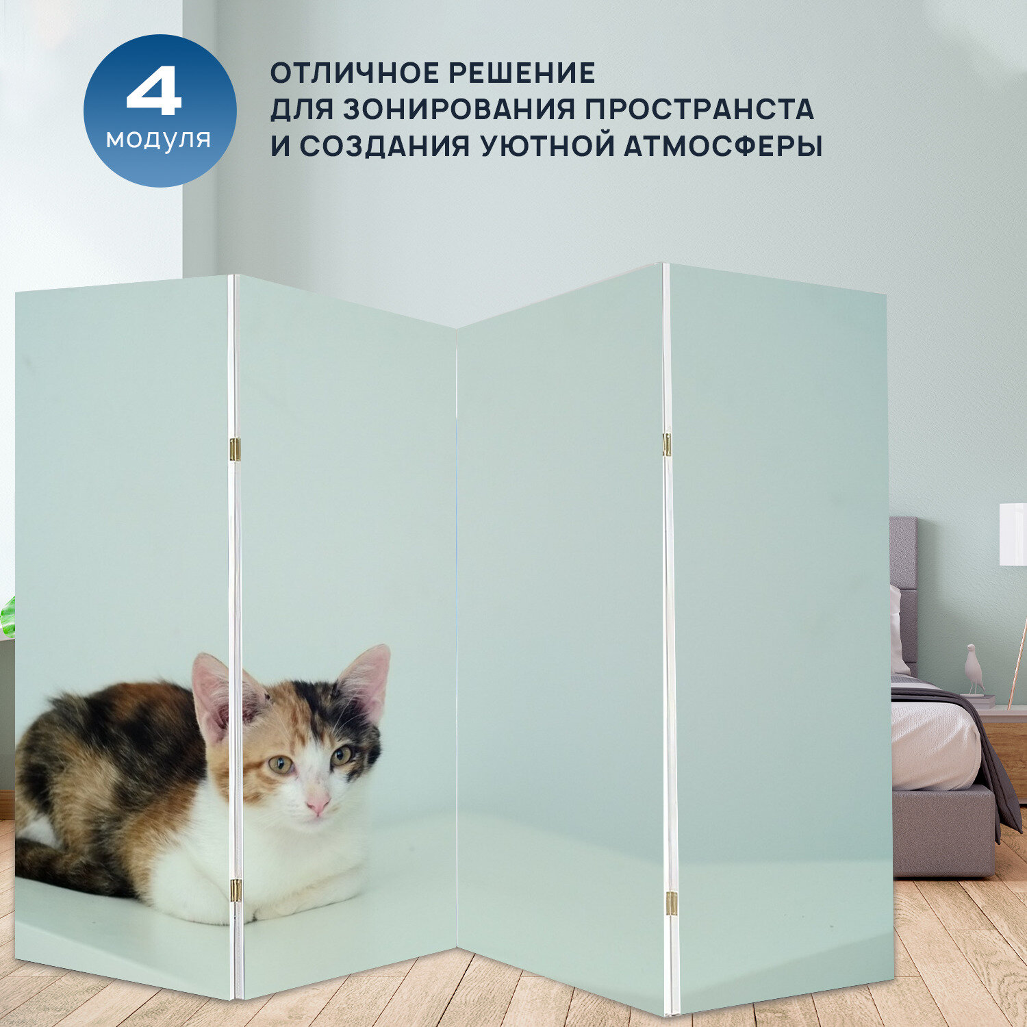 Ширма "Кошка, котенок, домашний питомец" раскладная перегородка для зонирования с принтом на холсте интересное: