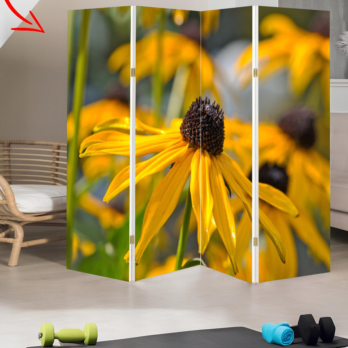 Ширма "Эхина, рудбекия, желтые цветы" раскладная перегородка для зонирования с принтом на холсте интересное: