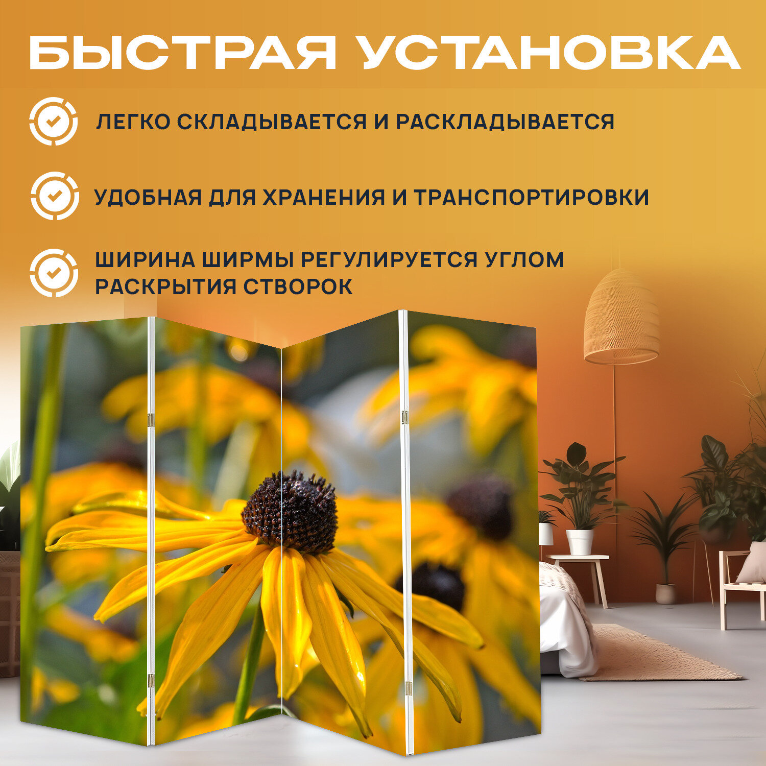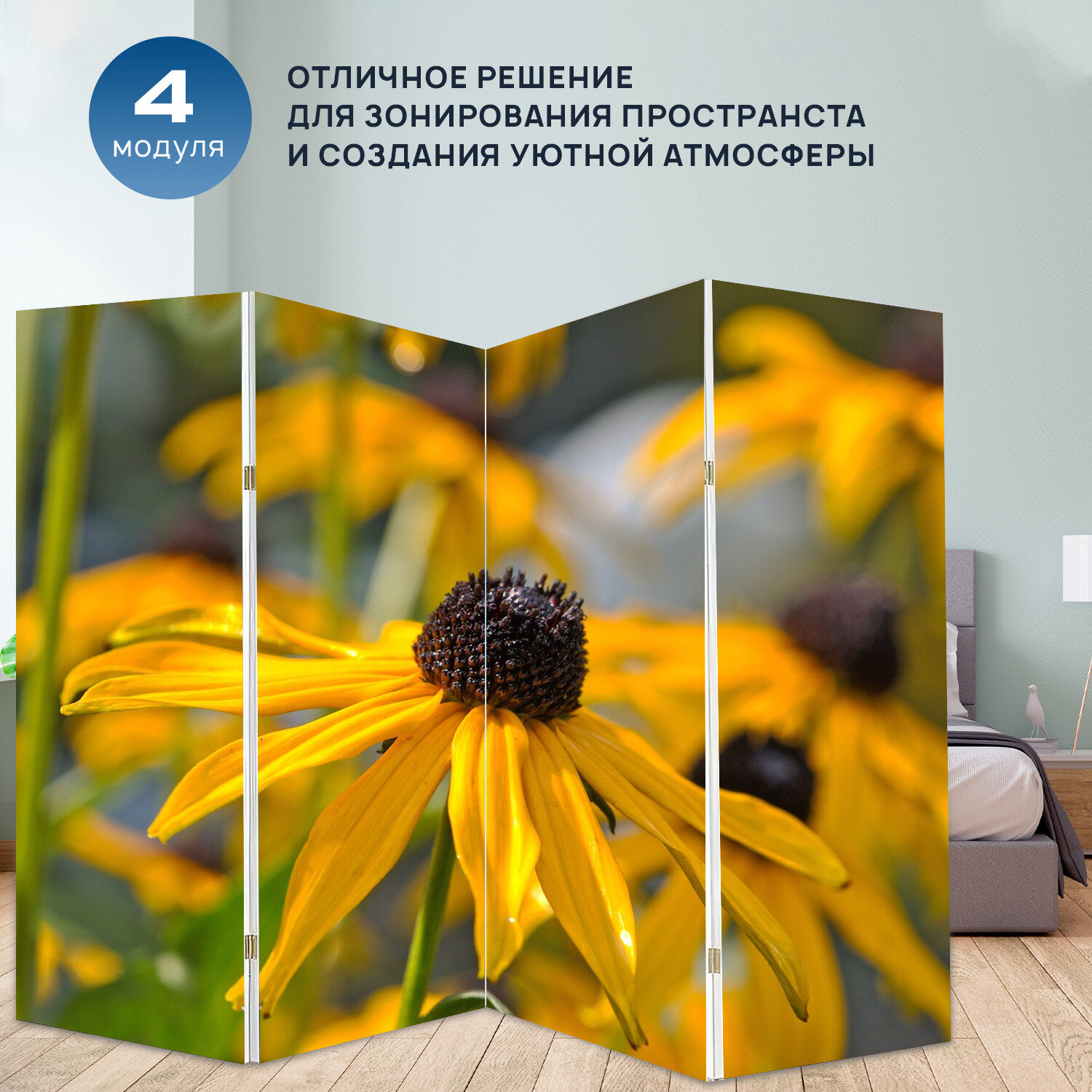 Купить Ширма "Эхина, рудбекия, желтые цветы" раскладная перегородка для зонирования с принтом на холсте