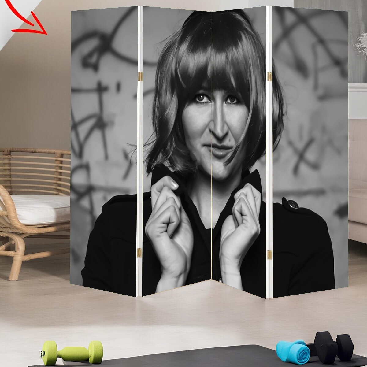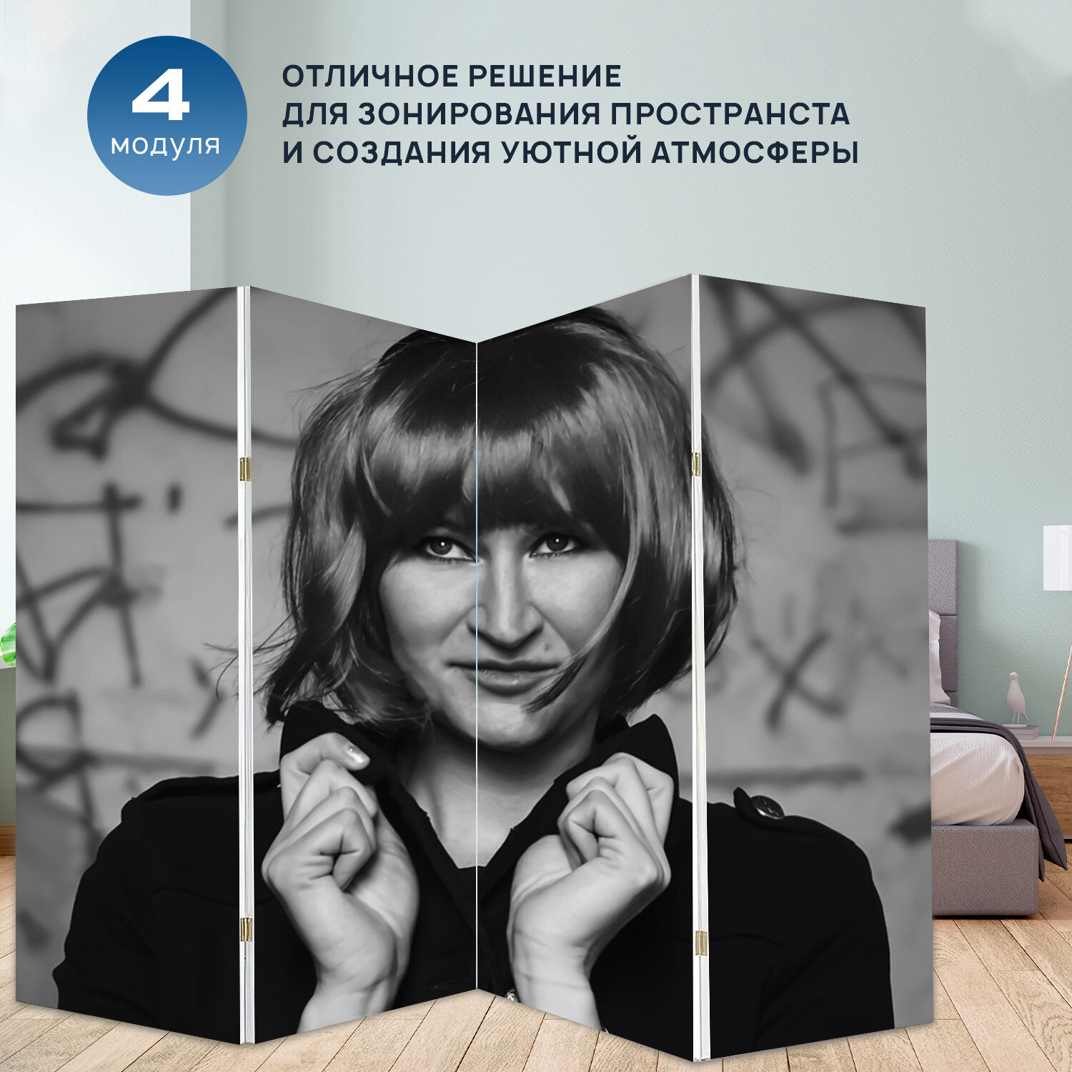 Ширма "Девушка, модель, взгляд" раскладная перегородка для зонирования с принтом на холсте интересное: