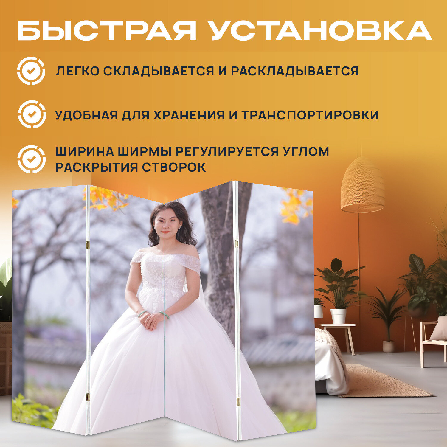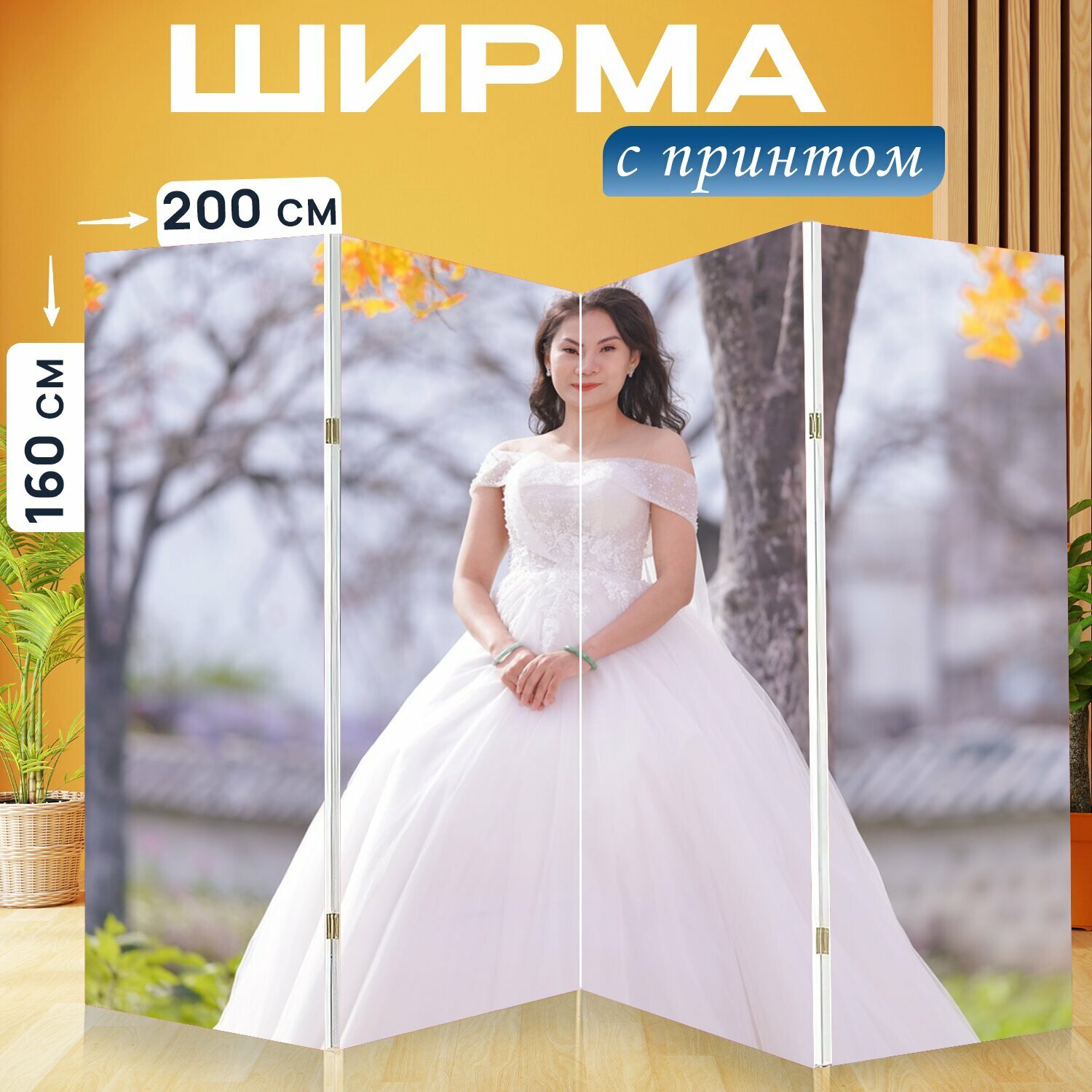 Ширма "Невеста, свадьба, портрет" раскладная перегородка для зонирования с принтом на холсте интересное: