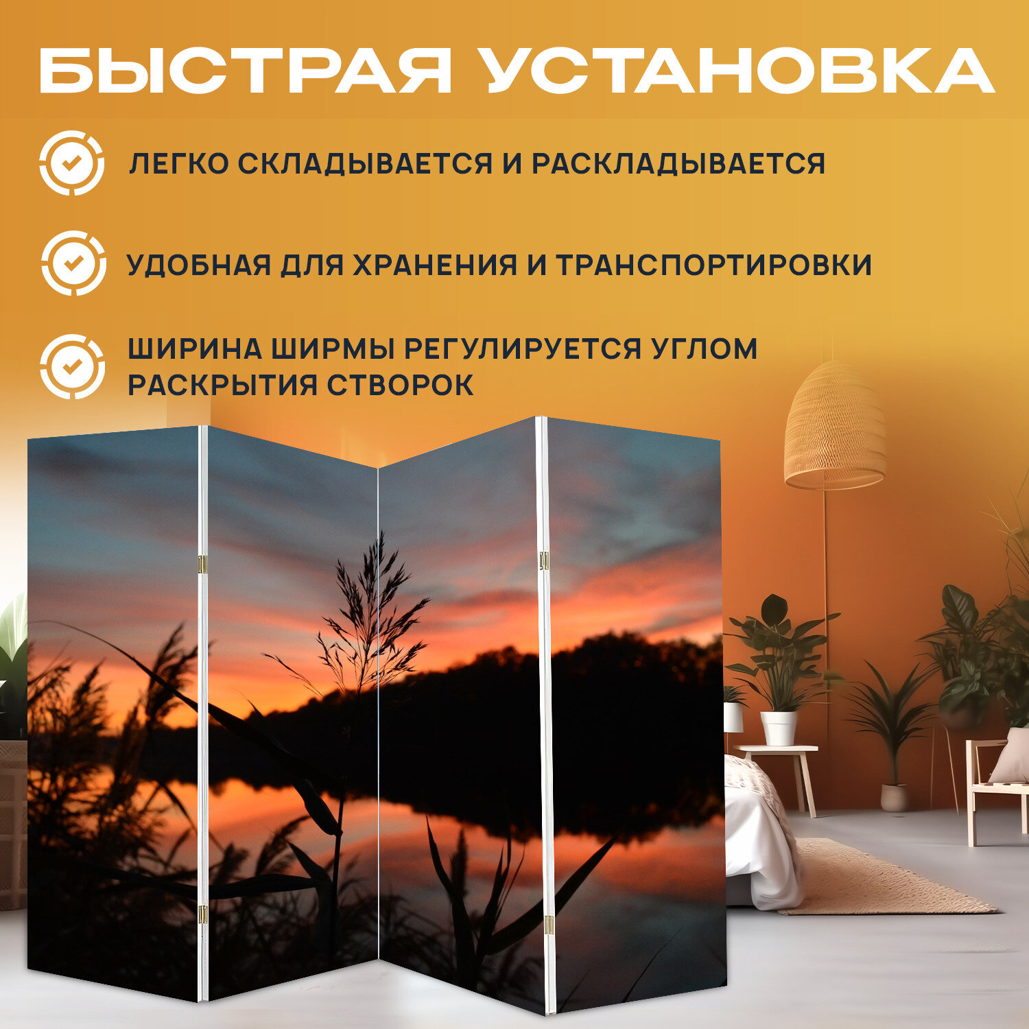 Ширма "Природа, закат, река" раскладная перегородка для зонирования с принтом на холсте интересное: