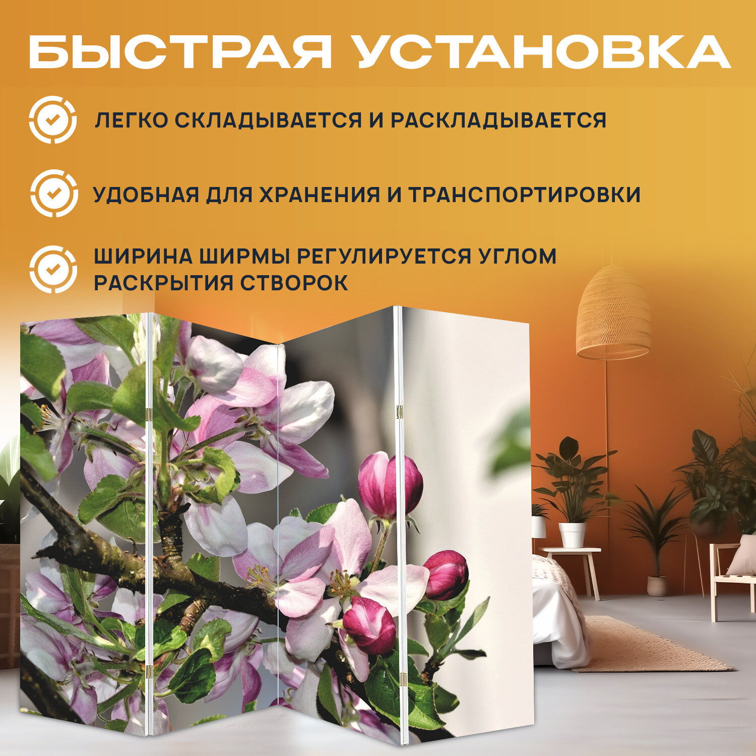 Ширма "Яблоневый цвет, расцветает, яблоня" раскладная перегородка для зонирования с принтом на холсте интересное: