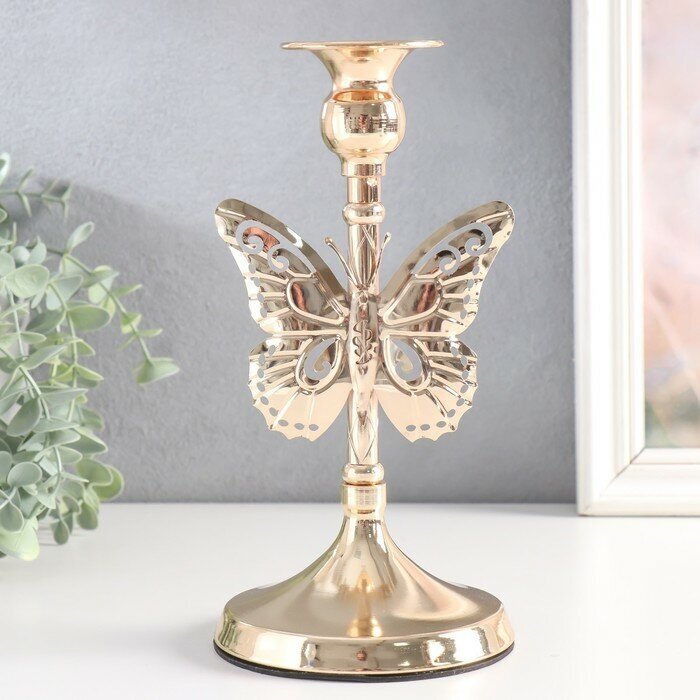 Купить Подсвечник металл на 1 свечу "Ажурная бабочка" d-2,5 см золото 11х11х20,5 см